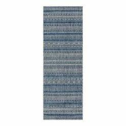 World Market Blue and Ivory Geometric Stripe Lucca Indoor Outdoor Rug