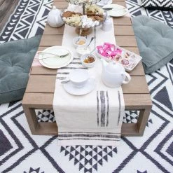 World Market Gray and Cream Shag Stripe Hanai Indoor Outdoor Rug