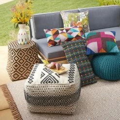 World Market Black and Ivory Dot Indoor Outdoor Floor Cushion