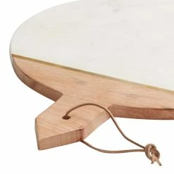 World Market White Marble and Wood Cheese Board and Knife Set