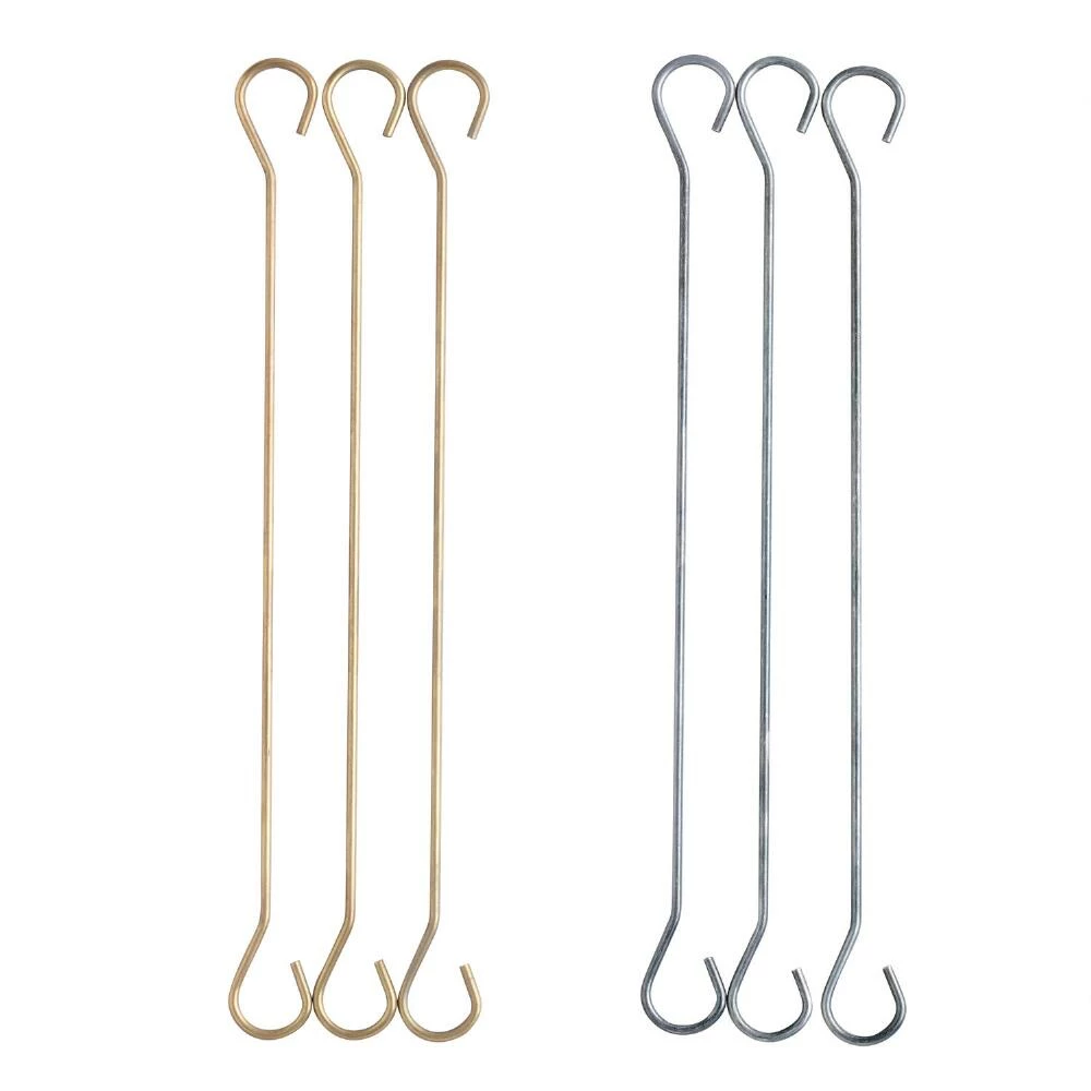 Display your favorite lantern candleholders beautifully and securely with these handy double-ended metal lantern hooks. Ideal for indoor and outdoor lighting, this double set of three-packs includes three silver and three gold.