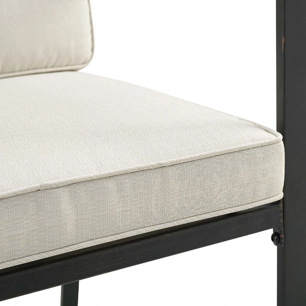 - Made of steel with oil-rubbed bronze powder-coated finish and solution-dyed polyester cushions