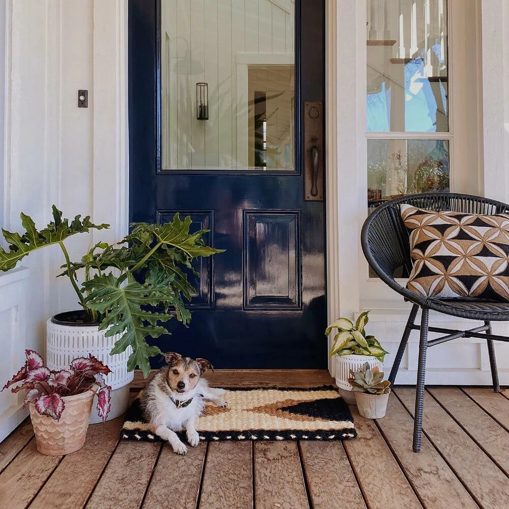 Featuring black and tan chevron arrows on an ivory backdrop, our exclusive arrow doormat is a sophisticated modern accent with a double-sided design. Printed with neutral colors to match any decor, this reversible mat is crafted of coconut husk fibers for long-lasting durability.