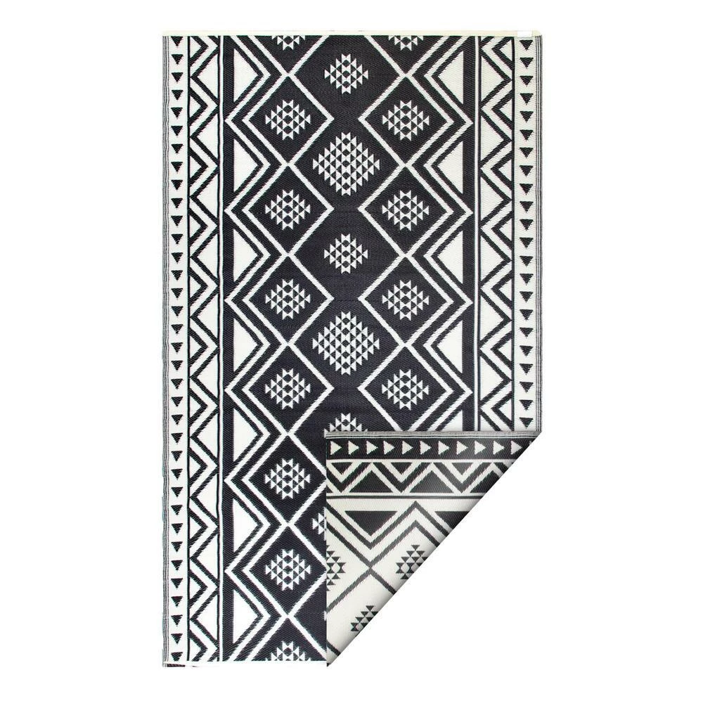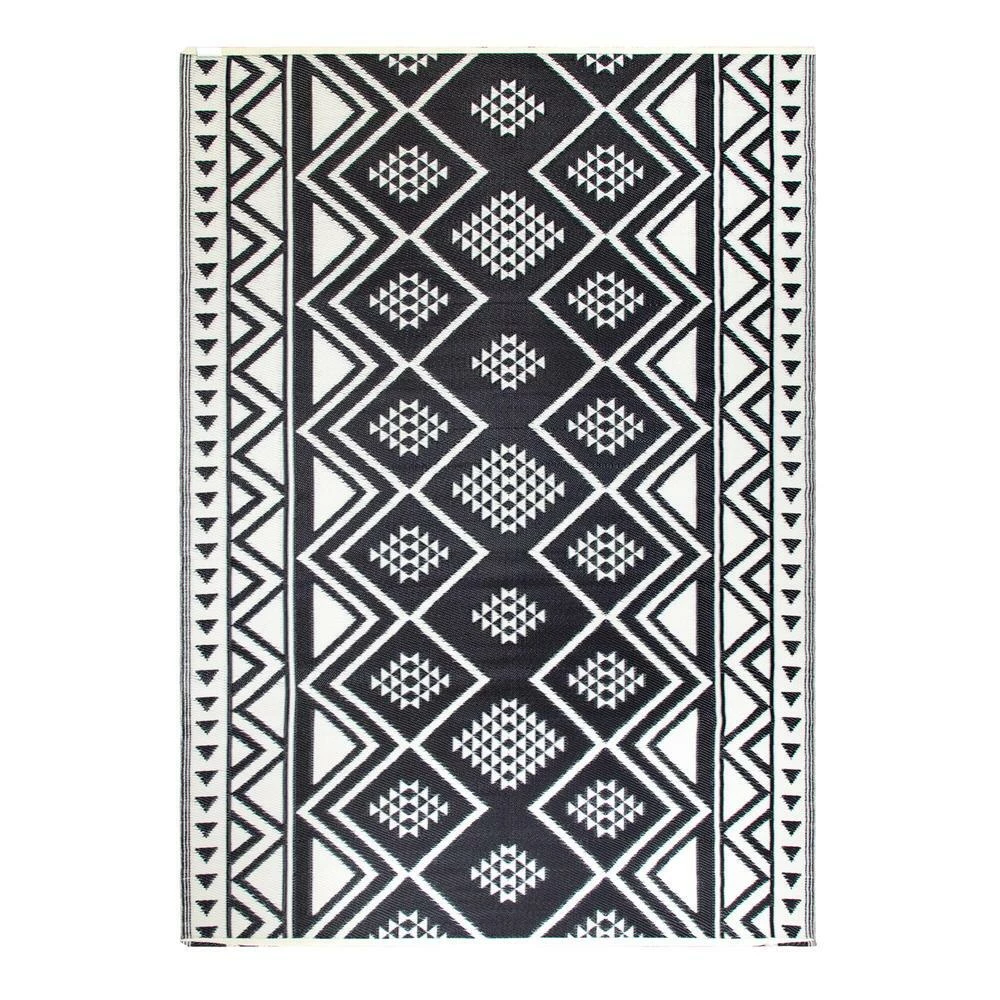 Featuring our Moroccan-inspired diamond design in classic black and white, our reversible 6×9 indoor-outdoor Rio floor mat is crafted with 90% recycled material. Durable and easy to clean with a soft woven texture, this versatile accent is a sophisticated update for high-traffic rooms, wooden decks, balconies and patios. You can also roll up this lightweight floor mat to enjoy its elegant double-sided pattern at the park or beach.
