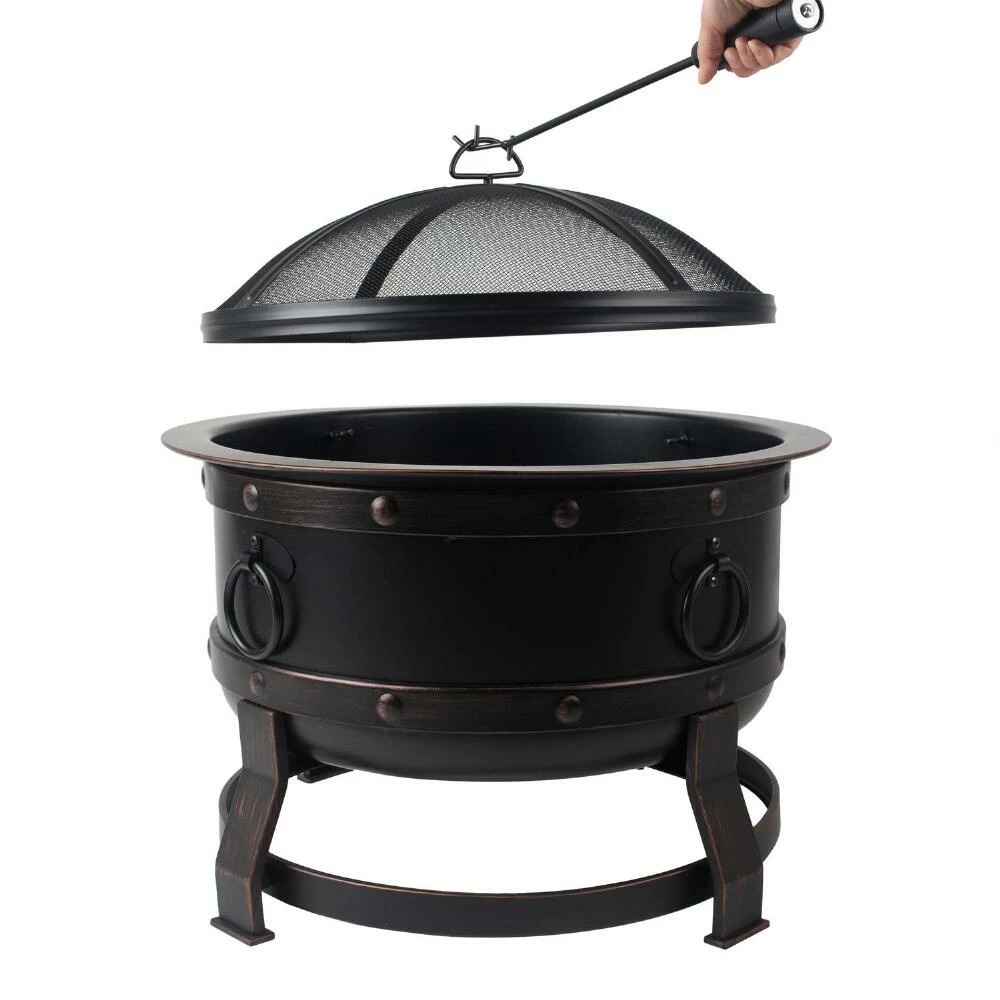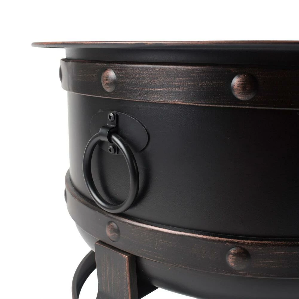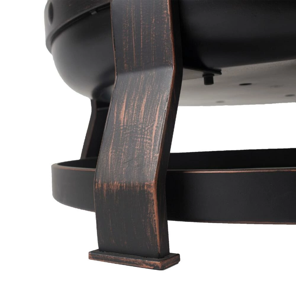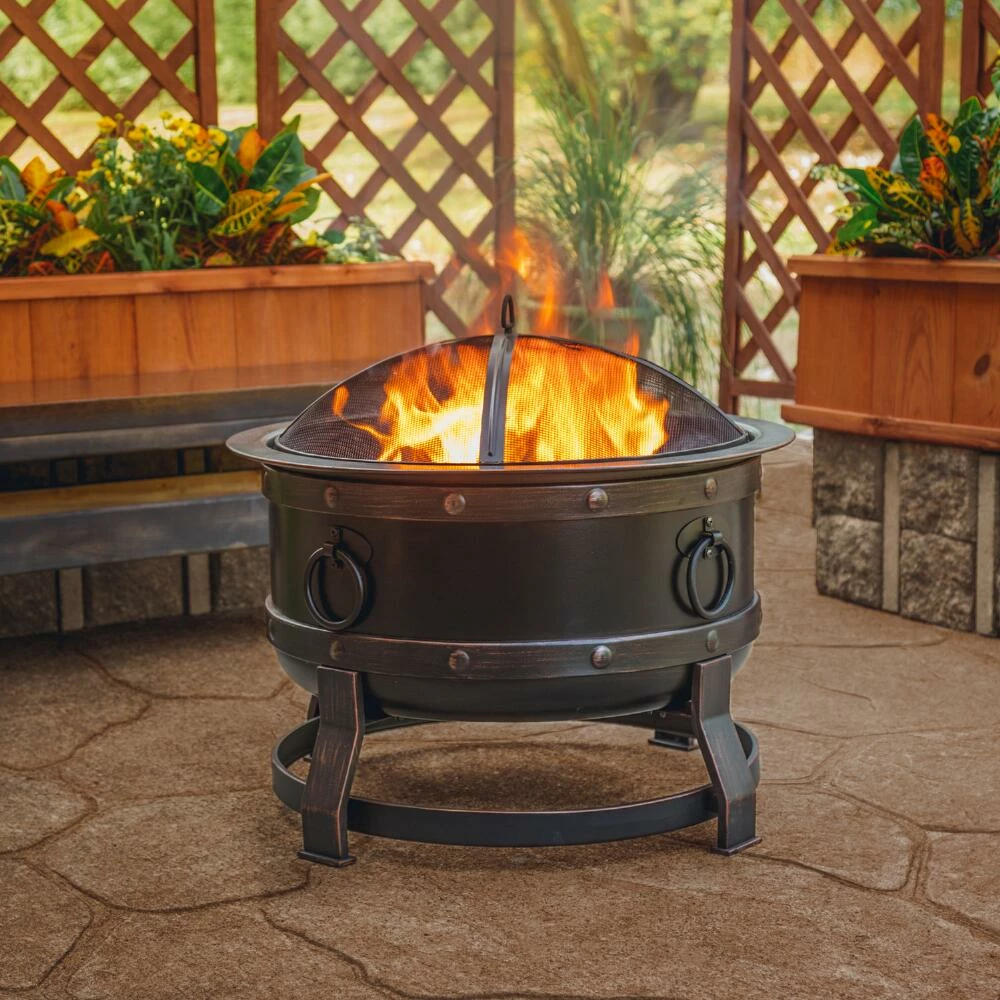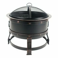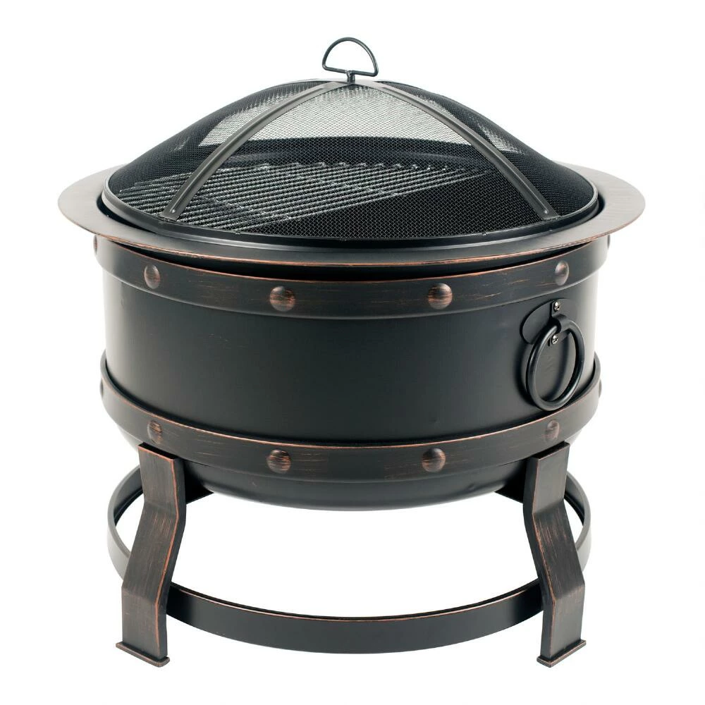 Get ready for hours of s’mores and kabob grilling with the industrial-inspired Brook fire pit finished in rubbed bronze. Its deep bowl creates a longer lasting, more consistent fire by raising the wood off the bottom and allowing oxygen to circulate around it. This complete fire pit set includes a full-coverage mesh screen, fire poker, ring handles for safe transport, drainage holes, and even a cooking grid for grilling your favorite foods.
