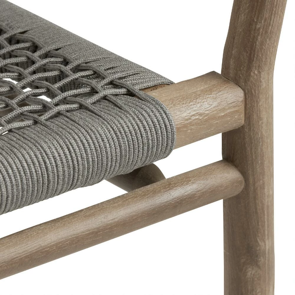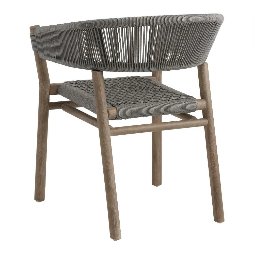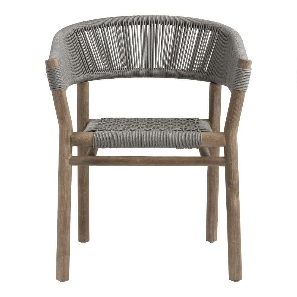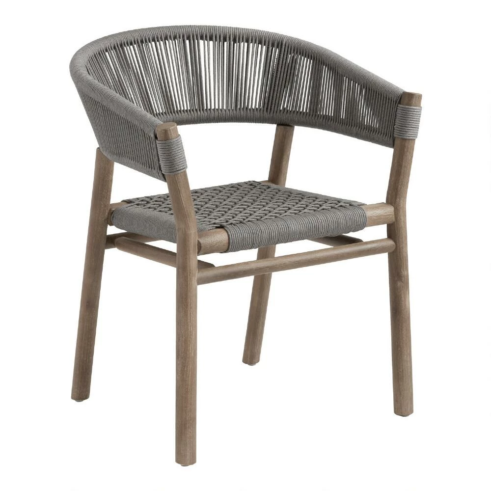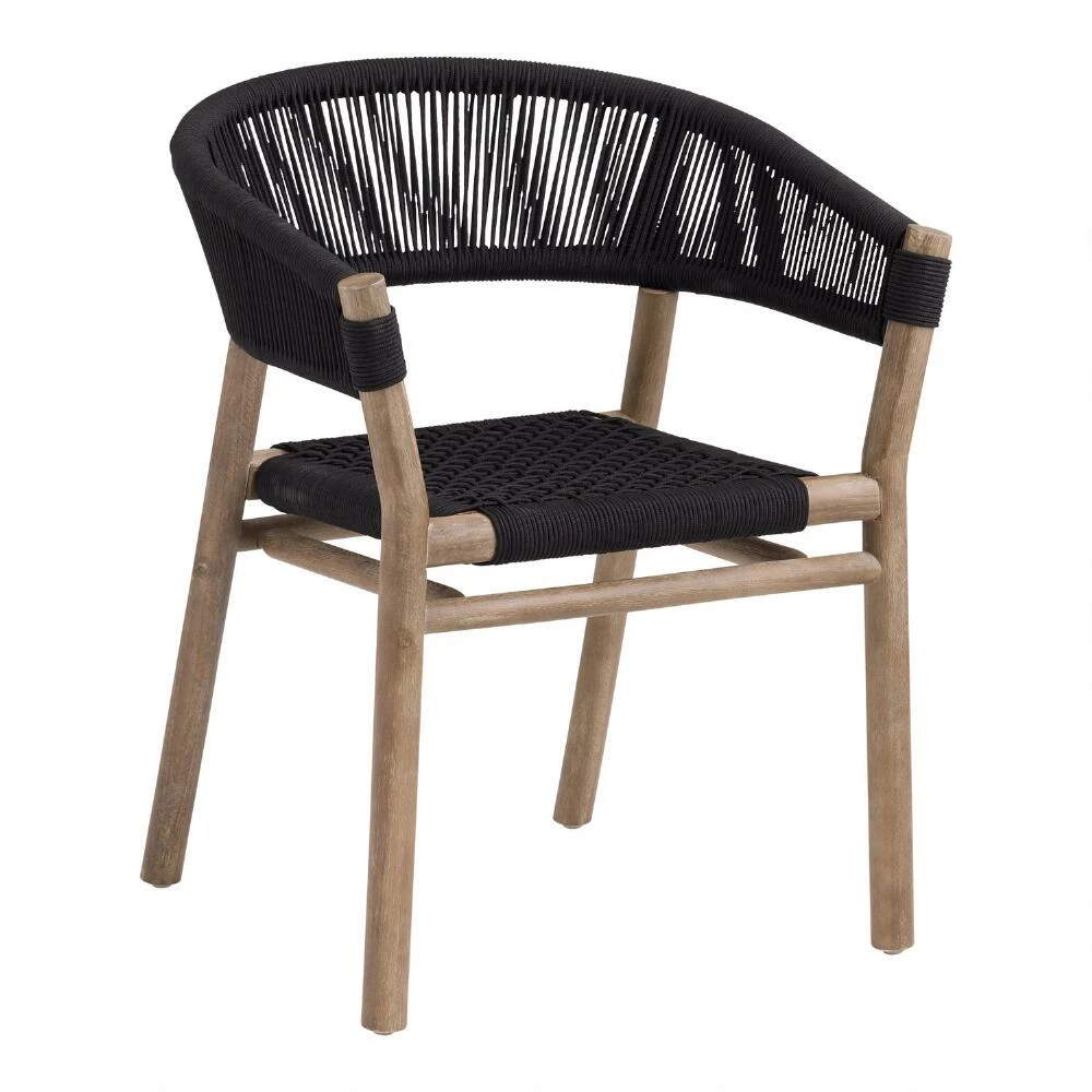 Our exclusive Cabrillo patio dining chair is crafted with ocean-ready nautical sailing rope handwoven over a sheltering curved acacia frame in a natural hue. In your choice of rope colors, this versatile outdoor dining armchair brings modern, beach-worthy vibes to bistro sets, balconies and decks.
