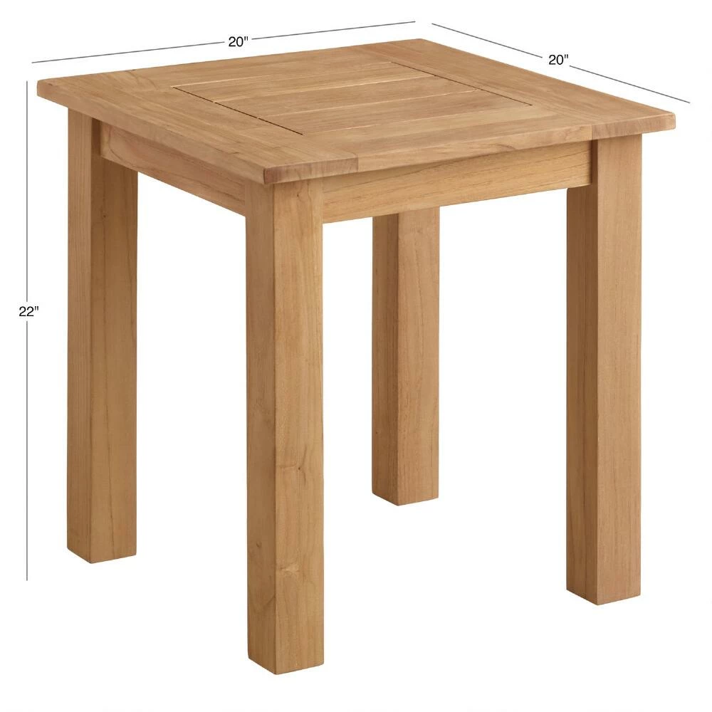Crafted of sturdy, plantation-grown teak in a casual, understated design, this side table makes it easy to kick back and enjoy your outdoor space with friends and family. The optimal height for setting down your drink or featuring an outdoor lantern or candle, it offers solid craftmanship in a relaxed, natural finish.