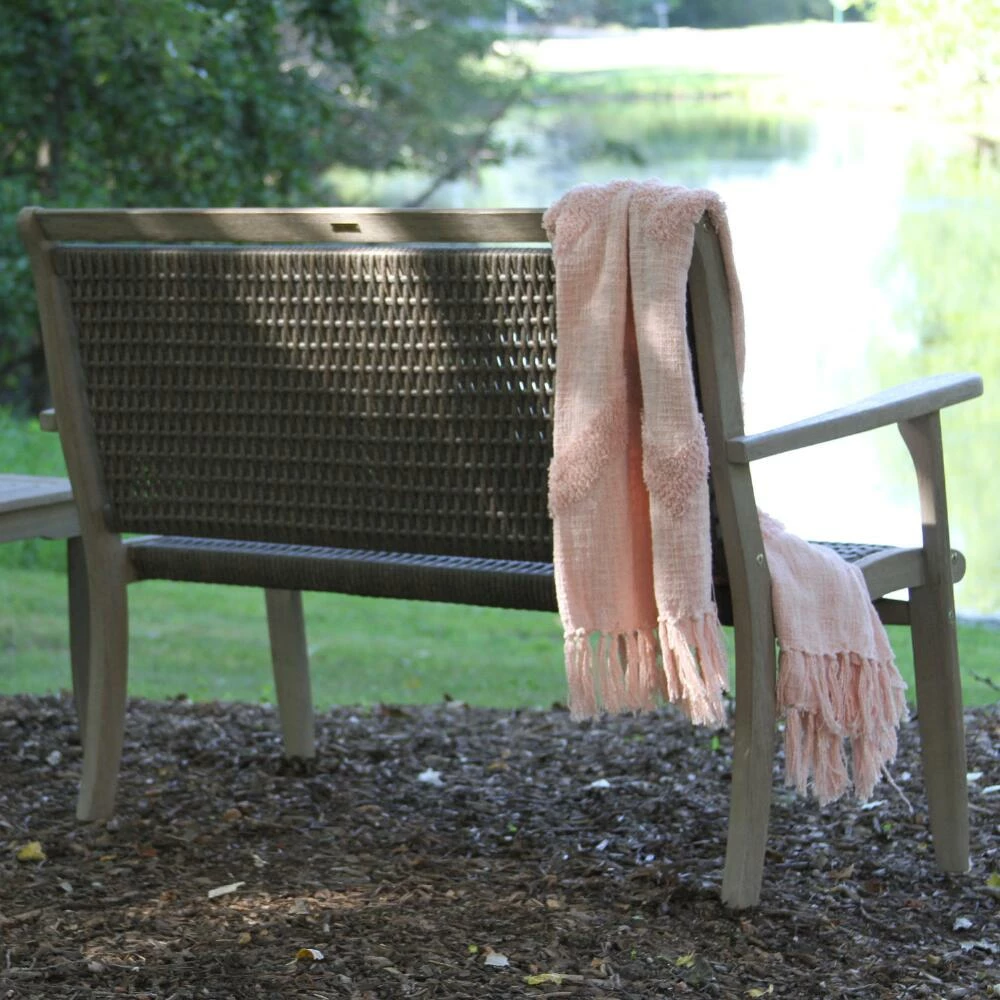 Add a sophisticated seating option to your patio or porch with the roomy Claire outdoor bench. It impresses with gray all-weather wicker woven around a plantation-grown eucalyptus frame. Crafted with care, this outdoor loveseat is textured by hand with a wire-brushing technique and finished with three different coats of stain, making for minimal upkeep.