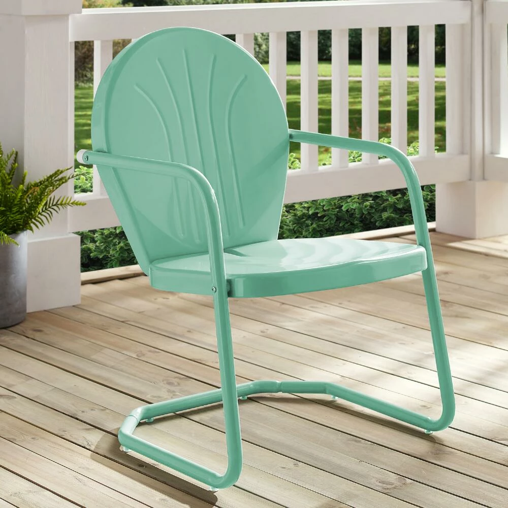 Our Durresi outdoor chair is a comfortable and attractive mid-century furniture piece for the porch, patio or backyard. Constructed with a curvy retro silhouette made from sturdy powder-coated metal in a variety of vibrant colors, this outdoor armchair is made to withstand the elements season after season.