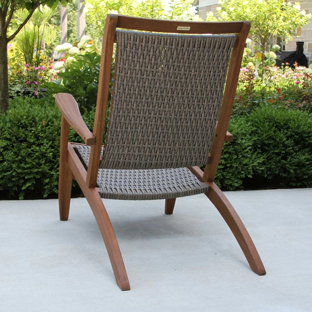 On the patio or in the garden, our sleek, low-profile lounge chair offers a comfortable spot to unwind outdoors. Made to withstand the elements, this durable outdoor armchair doesn’t compromise on style. Solid plantation-grown eucalyptus wood in a rich brown finish frames chunky, woven resin wicker in a driftwood-gray hue for contemporary contrast.