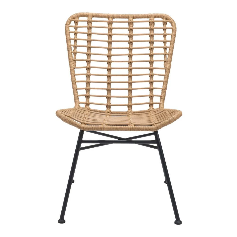 Woven of all-weather wicker, these Everett outdoor chairs invite guests to relax with cozy contoured seats and angled backs in a choice of versatile neutral hues. Built to withstand the elements on the patio or poolside, these open-weave wicker deck chairs stay sturdy above sleek black legs. Adding a casual modern vibe to your outdoor entertaining space, they’re a comfortable set of chairs for your alfresco dining table or backyard lounge.