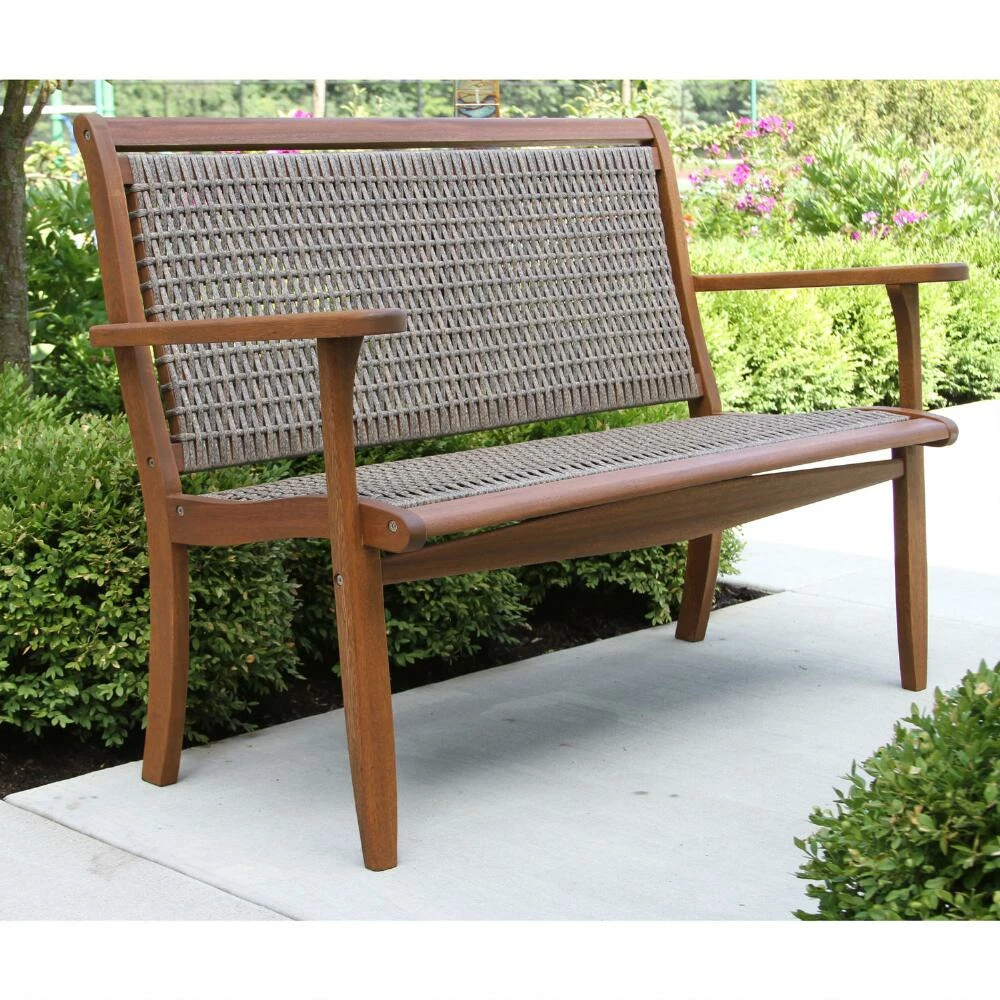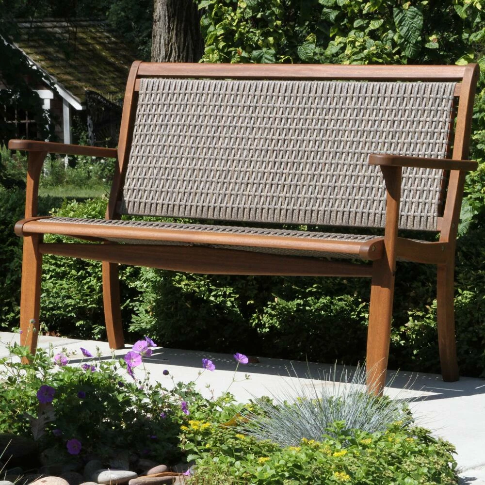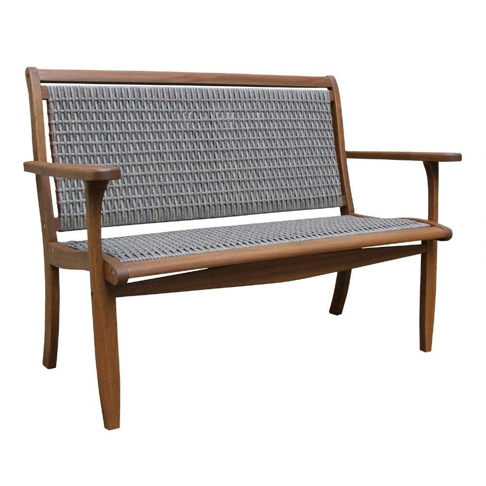 Whether you’re soaking up the sun or cooling off in the shade, our outdoor bench is just the spot for deep relaxation. With a comfortable seat and back, this loveseat’s solid eucalyptus wood and gray all-weather wicker construction lend Danish-inspired form to your outdoor furniture.