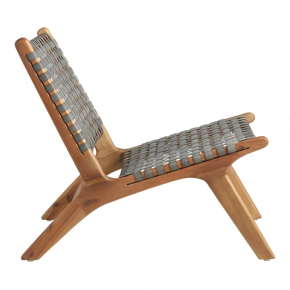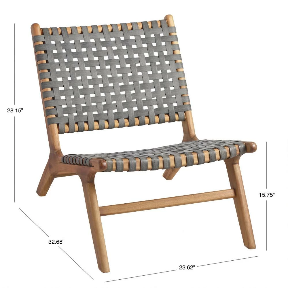 Woven by hand in the heart of Vietnam’s Mekong Delta, our Girona outdoor accent chair is a delightful blend of craftsmanship, style and relaxation. Solid acacia wood paired with flat, woven weather-resistant wicker straps in charcoal gray creates contrast on this contemporary side chair. This versatile seat features a low profile, wide seat and pitched back for enhanced comfort.