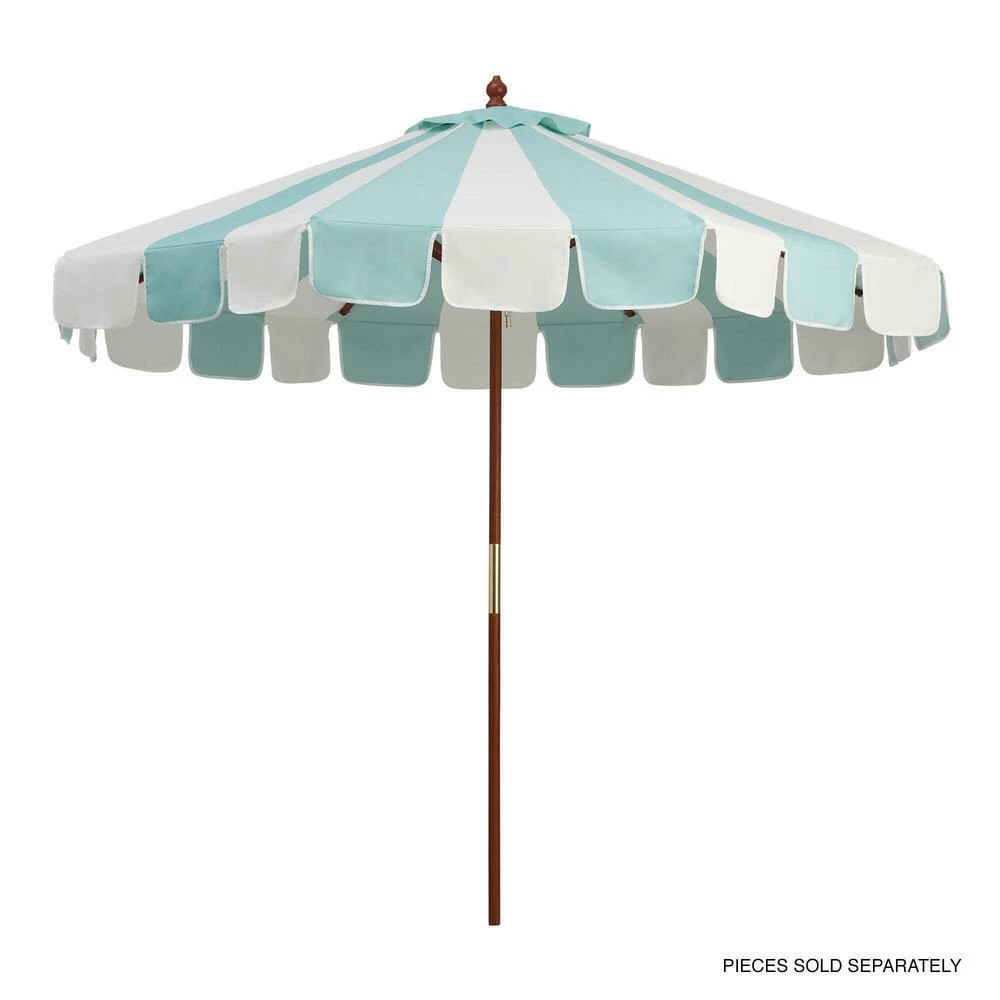 Our 9-foot patio umbrella canopy features wide white stripes with your choice of contrasting colors, inspired by the relaxed refinement of country clubs and golf resorts. Made of durable fabric to withstand the elements, this replacement canopy pairs with any of our 9-foot umbrella frames and poles to provide maximum shade for lounging and entertaining. This is an umbrella canopy only. The umbrella pole and frame are sold separately.