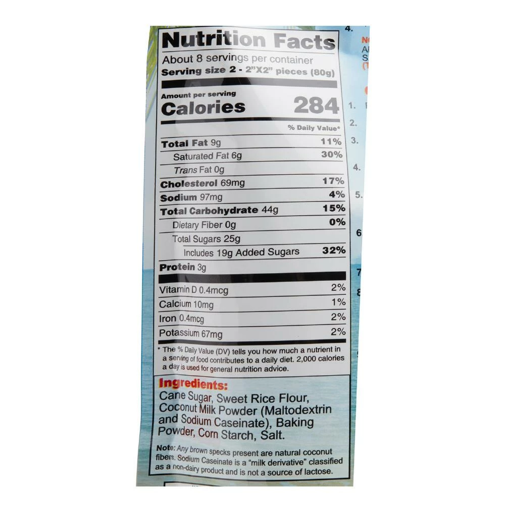 - Made with cane sugar, sweet rice flour, coconut milk powder, baking powder, cornstarch and salt