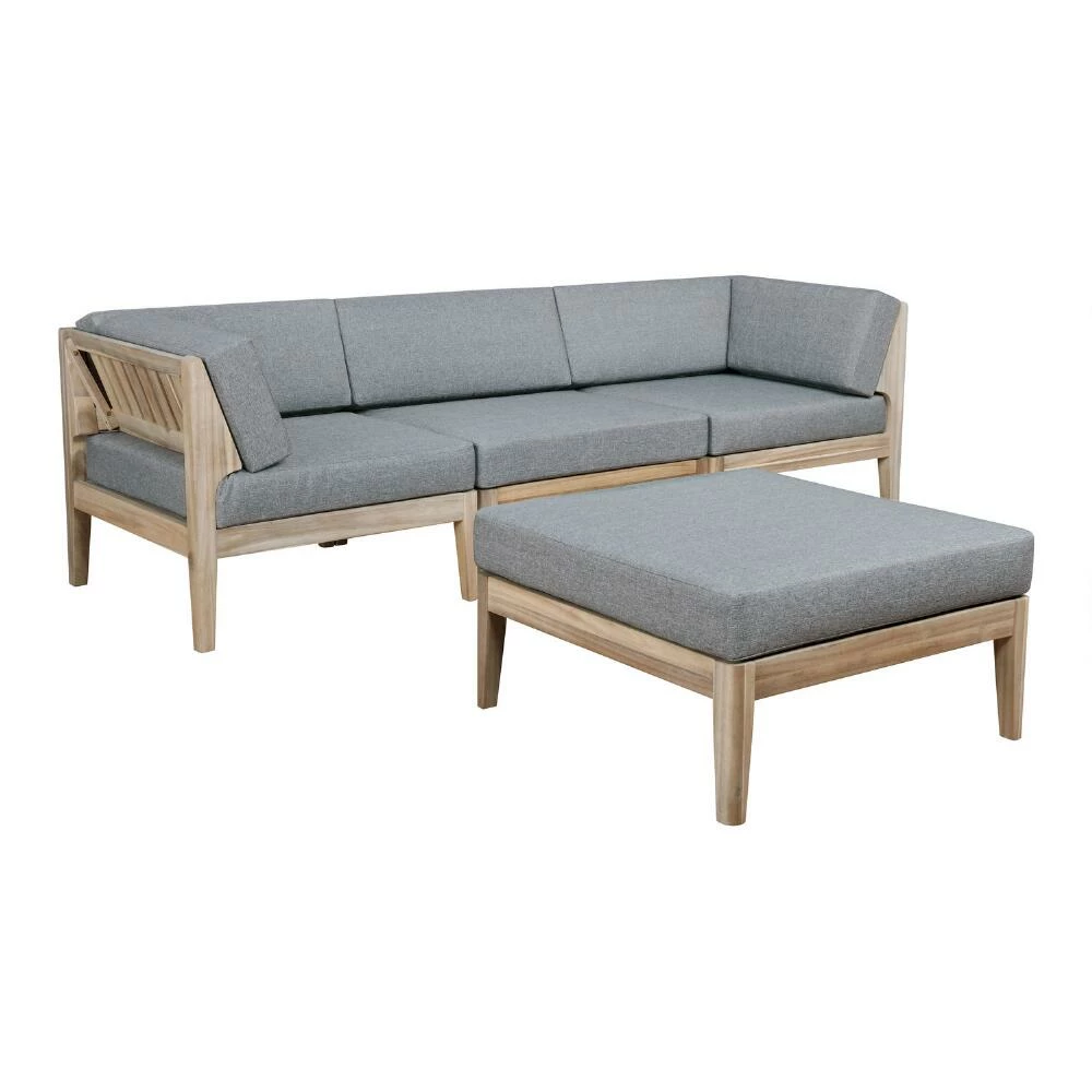 Design your dream patio, deck or backyard lounge space with the Jorna outdoor sectional ottoman. Made with a natural acacia wood frame and a plush yet durable gray cushion, use this versatile ottoman as an outdoor coffee table, handy extra seat or pair with our modular Jorna chairs for a sofa complete with chaise.