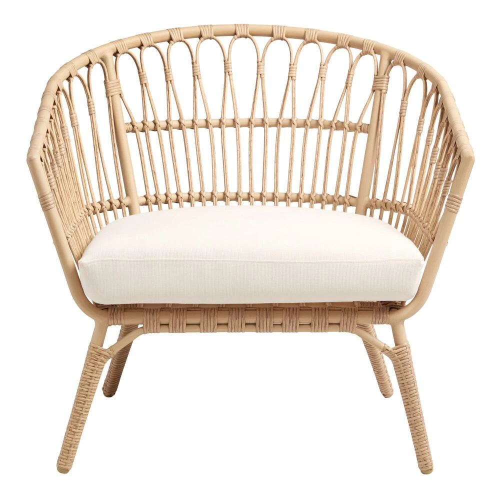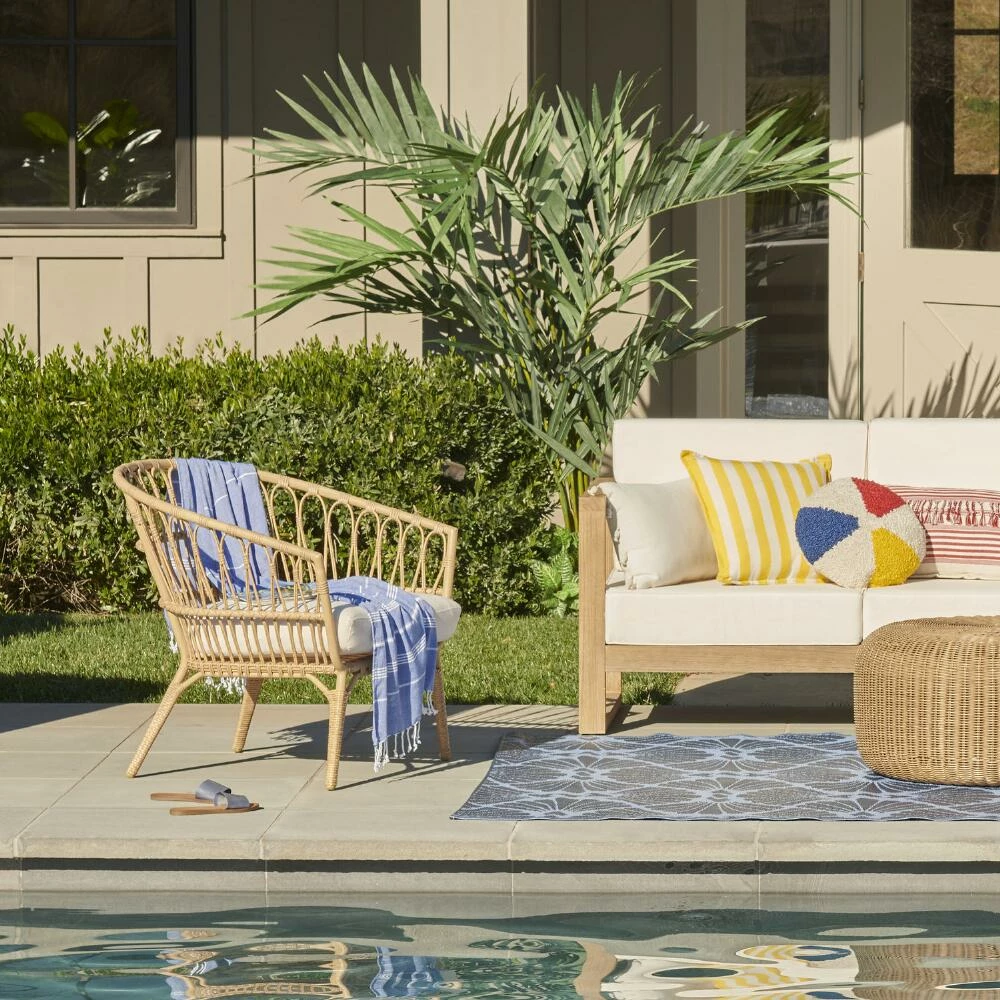 With an artful open weave and rattan-inspired all-weather wicker frame, our Lenco outdoor chair has us dreaming of our very own glamorous lanai. The slender footprint of this small-space bohemian chair makes it perfect for alfresco patio and balcony seating. This wicker chair features a comfy cushion and rust-resistant aluminum frame, so it’ll look and feel stylish even in hot and humid climates.