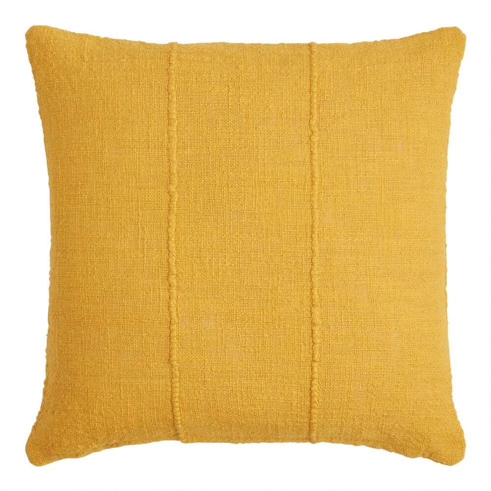 Add a touch of color and soft texture to your home with our large mud cloth throw pillow, complete with a removable insert. Featuring embossed lines and a selection of soothing, earthy tones, it easily mixes and matches to refresh your indoor or outdoor decor. Made in India with an innovative process that puts recycled water bottles to good use, our exclusive toss pillow lends casual style to couches, beds and chairs.