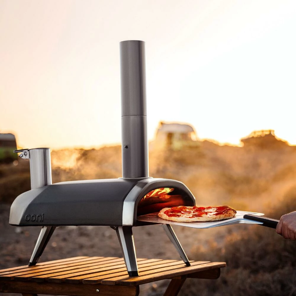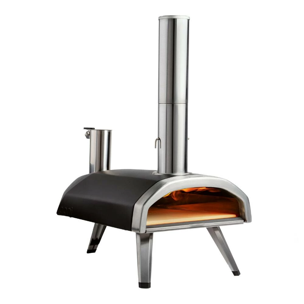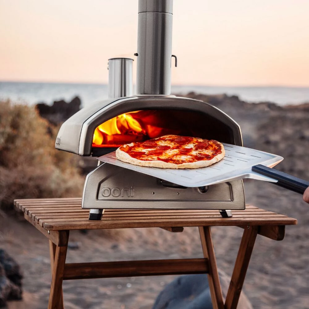Fueled by hardwood pellets for a delicious smoky flavor, this Ooni Fyra outdoor oven bakes restaurant-quality pizzas on its cordierite stone board. Lightweight for easy portability, this innovative oven is crafted of powder-coated stainless steel with a detachable chimney and collapsible legs. Perfect for daytrips and camping, it preheats quickly to cook pizzas, meats, vegetables and more in your backyard and at the park or beach.