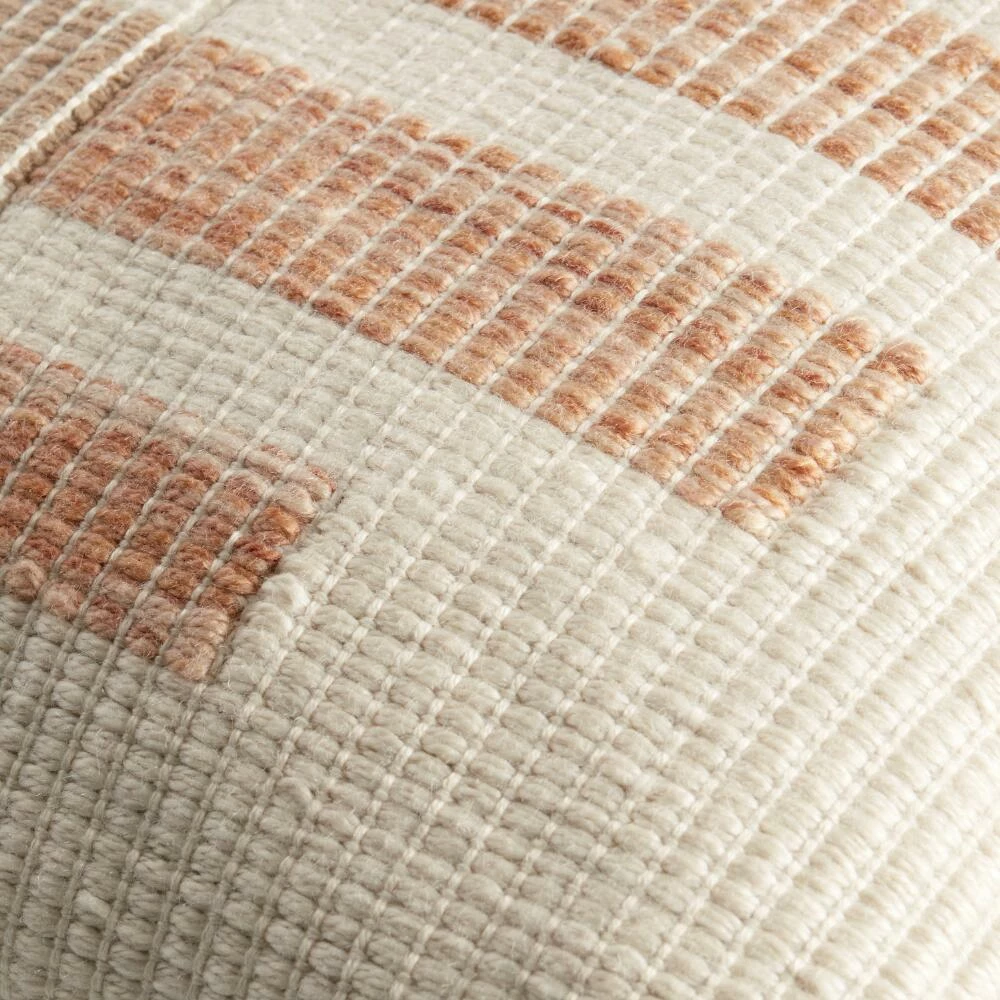 Kick back and relax in modern fashion with our geometric indoor-outdoor throw pillow. Complete with a removable insert, this toss pillow is consciously crafted with an innovative recycling process that reuses discarded water bottles. Showcasing earthy orange and tan stripes on an ivory ground, this sustainably minded home decor piles on the plush comfort in any seating area.