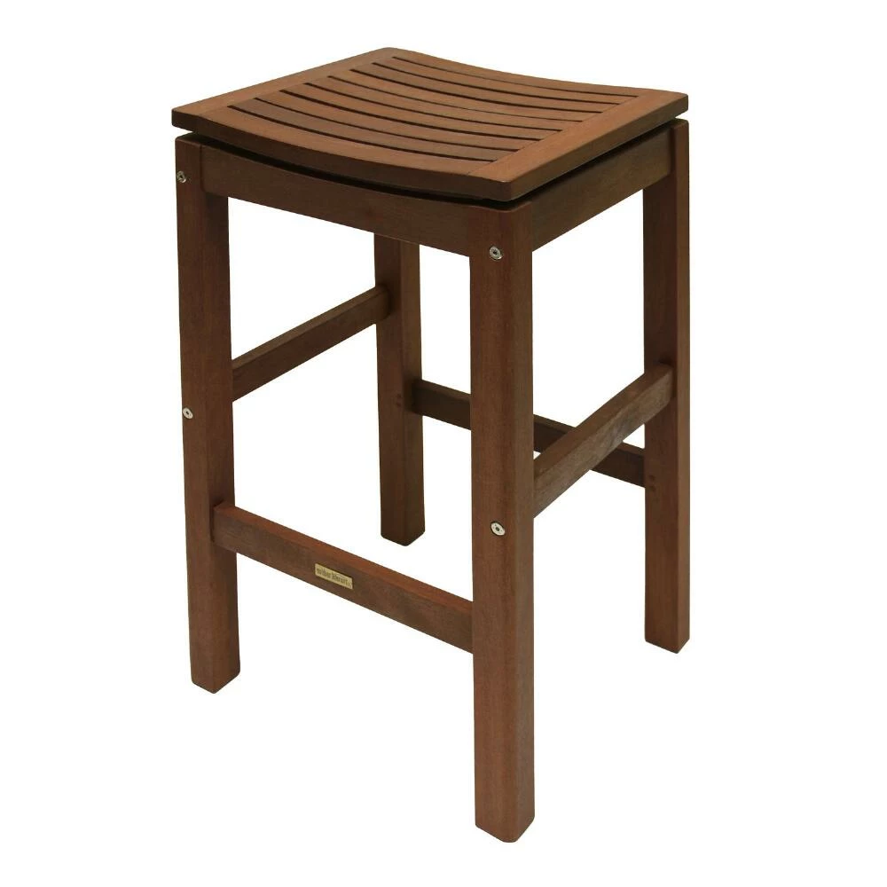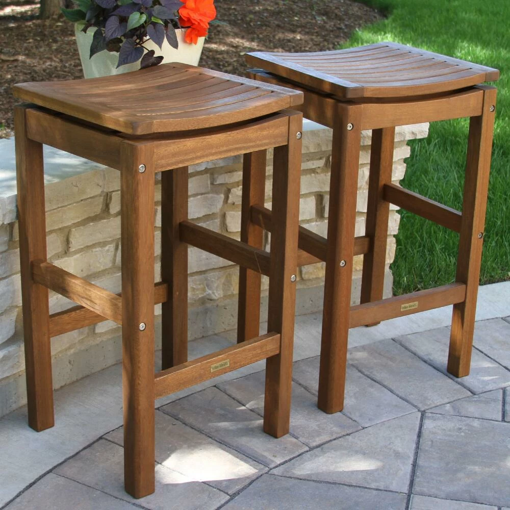 Crafted of eucalyptus hardwood, these backless Oreton barstools have a casual, contemporary appeal. They feature footrests and a curved seat for the ultimate in cushion-free comfort.