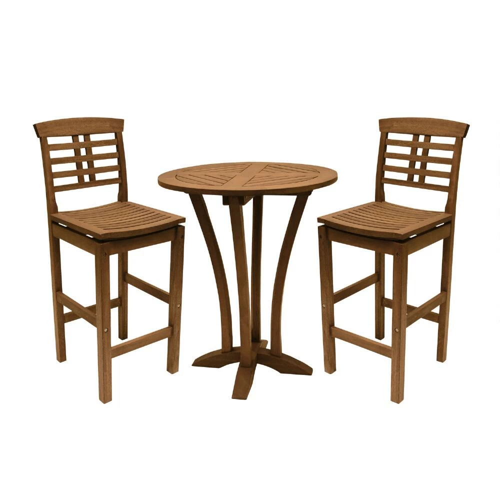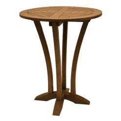 Crafted of eucalyptus hardwood, our curvy bar table boasts a casual, contemporary appeal. Its round surface is sized to seat up to four for outdoor dining and entertaining.