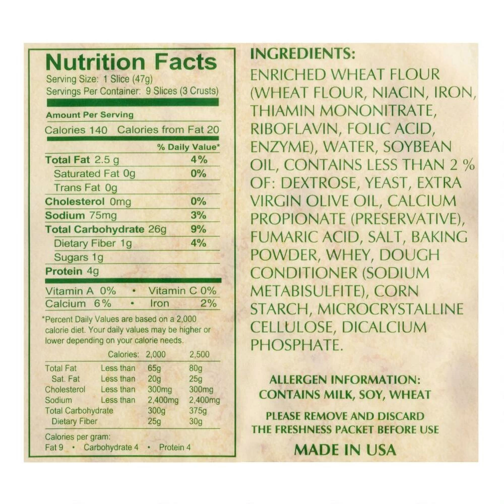 - Made of enriched wheat flour, water and soybean oil