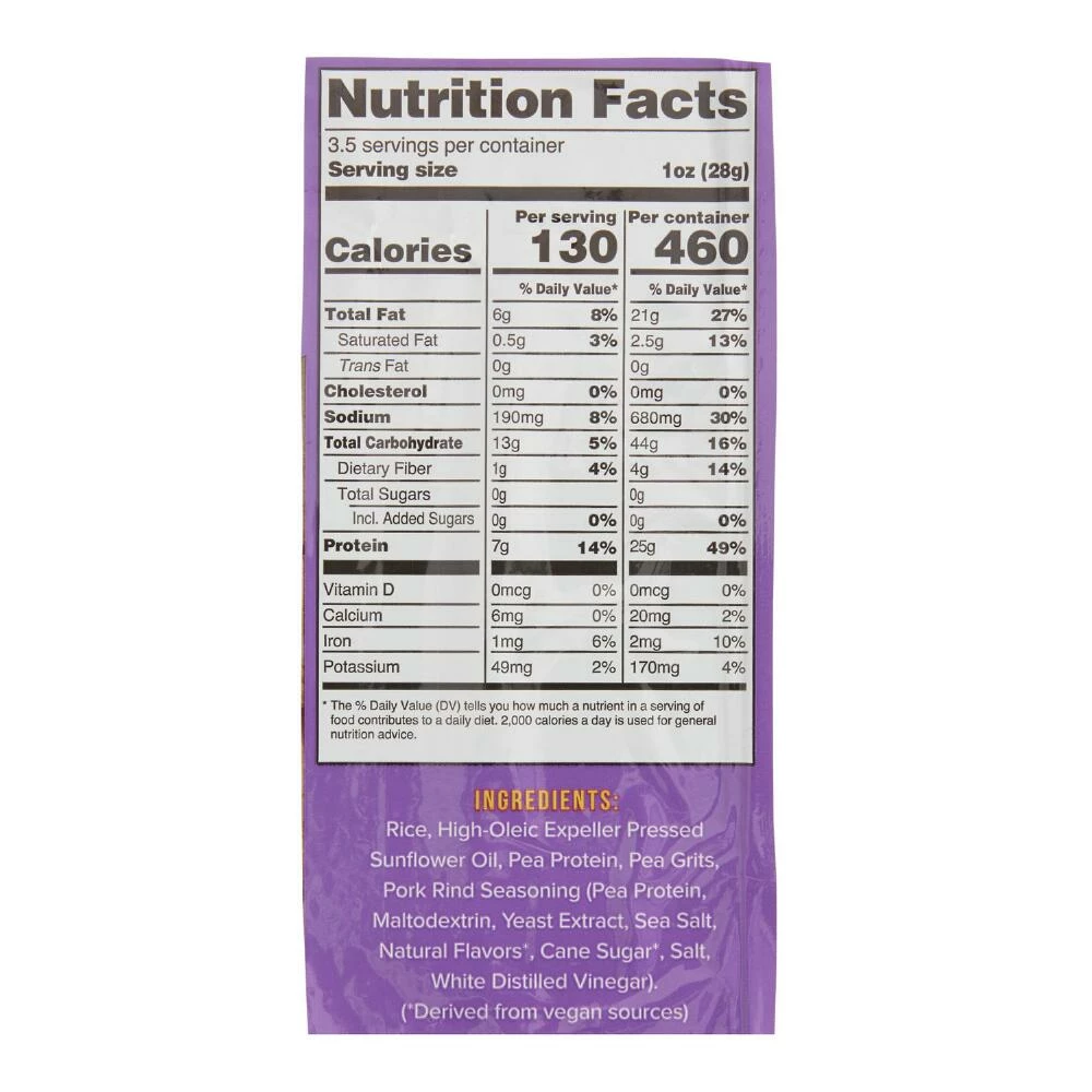 Crafted with wholesome vegan ingredients straight from carefully sourced farms, these “pigless” pork rinds are baked and free from gluten, GMOs and soy for nutritious snacking. Rich with 100% plant-based protein, they scratch the itch for salty, crunchy deliciousness without the guilt.