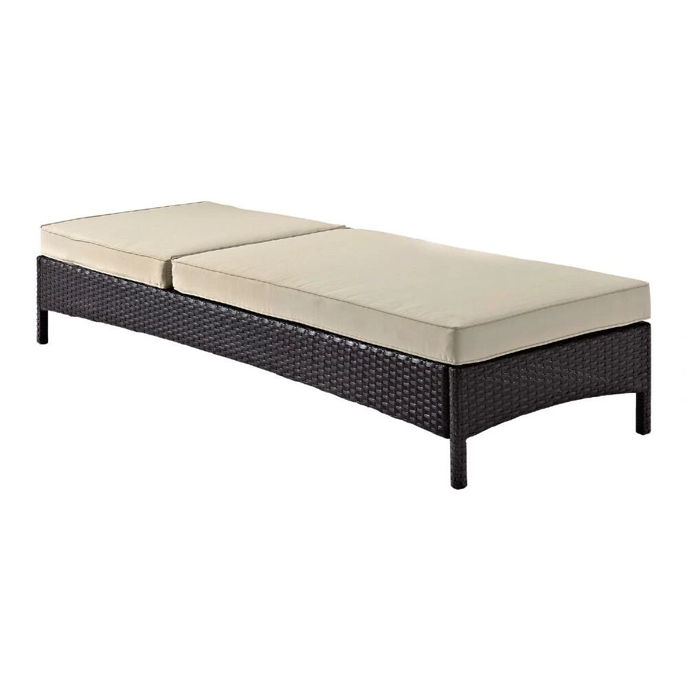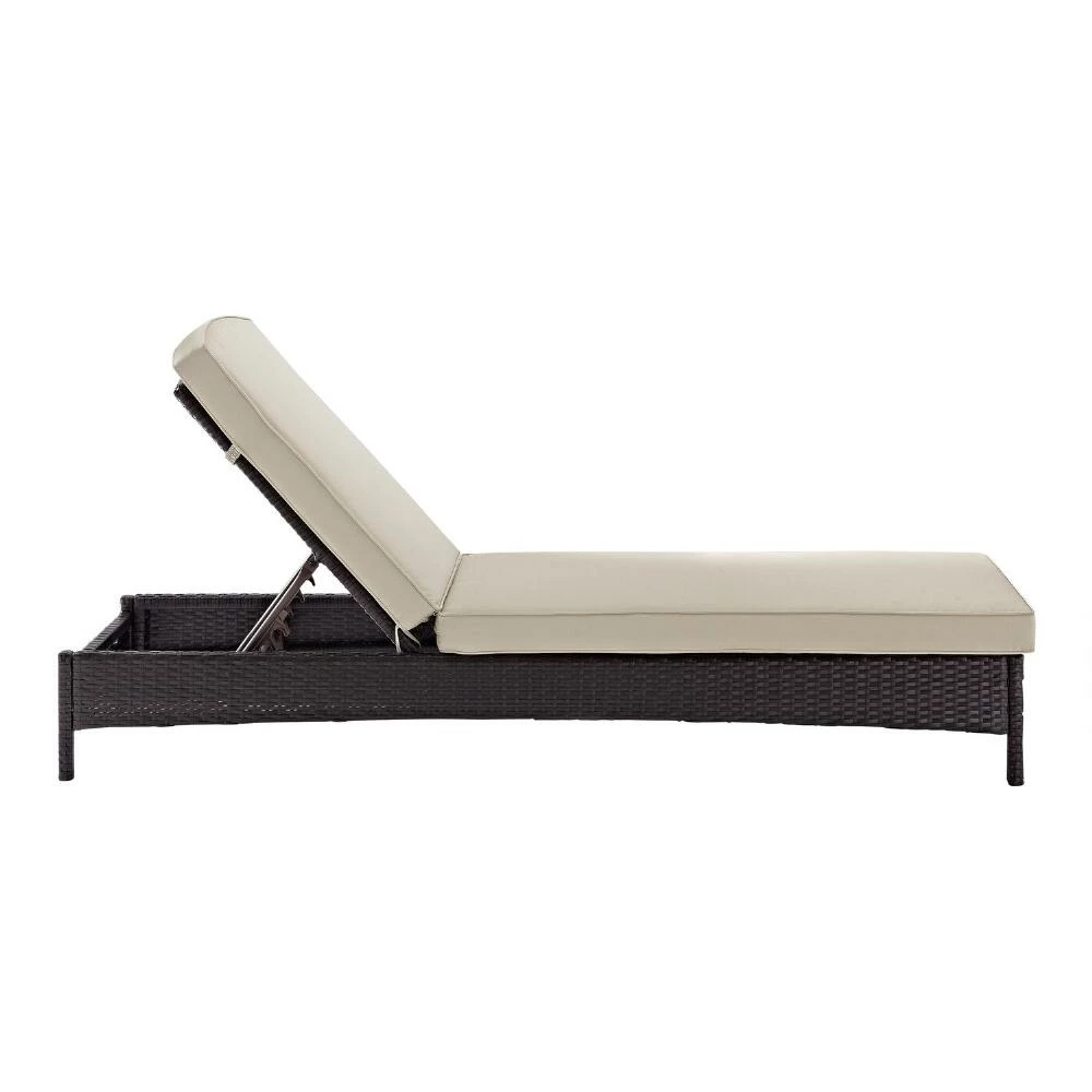 The Pinamar outdoor chaise lounge chair offers a perfect spot to relax in your backyard space. This patio lounger boasts a UV-resistant steel frame intricately woven with resin wicker in an espresso hue and neutral moisture-resistant cushion. A sophisticated and modern outdoor seat, it features an adjustable back for maximum comfort while unwinding on the deck or next to the pool.