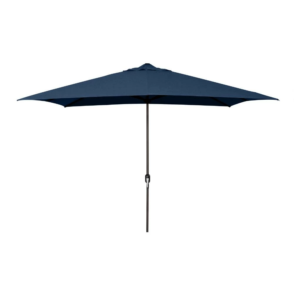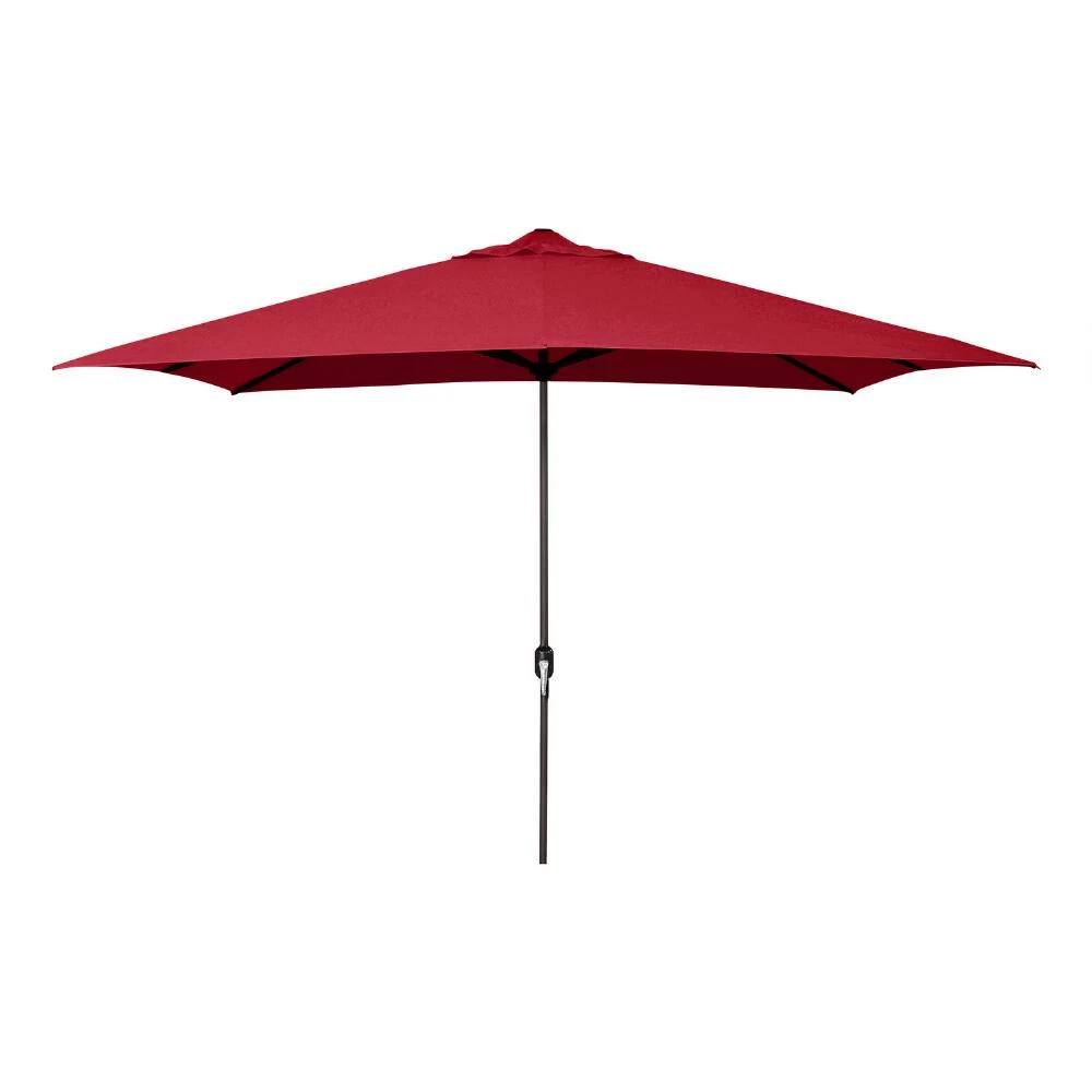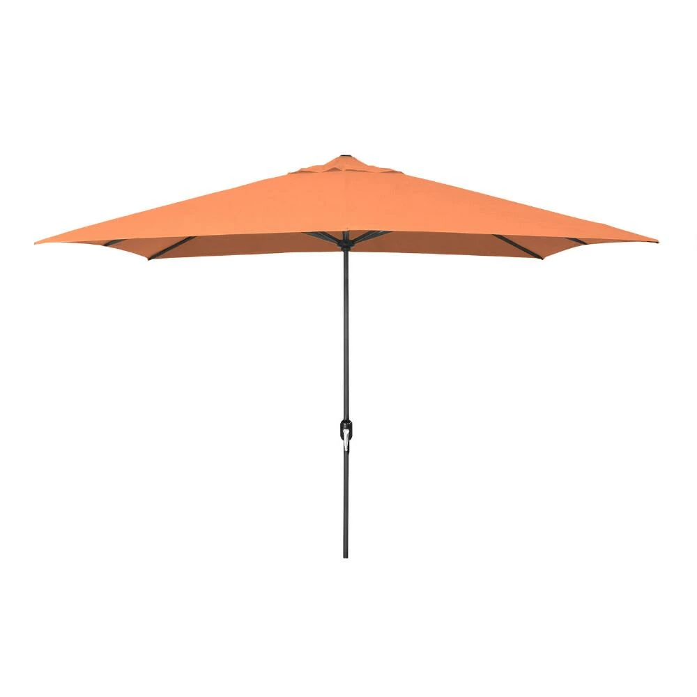 Featuring a wide canopy in your choice of colors, this rectangular patio umbrella brings expansive shade to your outdoor space. Made of heavyweight fabric, the solid-hued canopy resists stains, fading and water for lasting durability. Opening and closing with a convenient crank handle, this broad umbrella is perfect for sheltering a patio table or backyard seating setup from the sun.