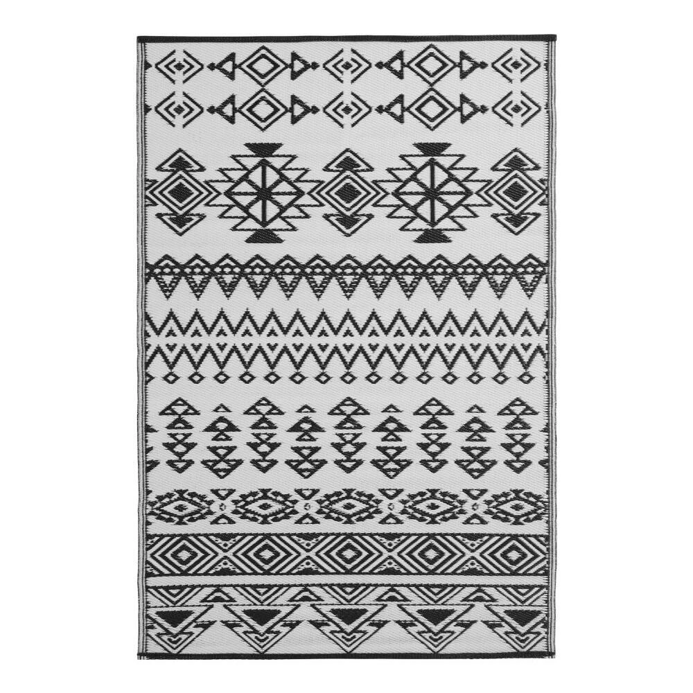 Featuring assorted Moroccan-style stripes in high-contrast black and white, our 4×6 Rio outdoor floor mat is durable, stain resistant and reversible. Woven with 90% recycled materials, its two-sided design provides double the wear on patios, balconies and decks. Elevating any space with its modern arrangement of vintage-inspired motifs, you can roll up this fade-resistant mat up for easy transport to the beach or park.