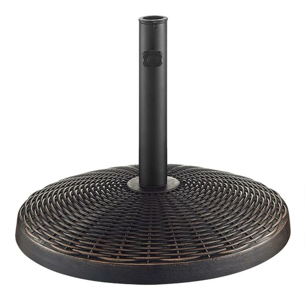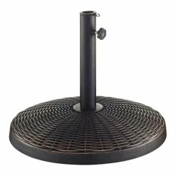 Featuring a wicker-style woven pattern, this rust- and weather-resistant patio umbrella stand provides a stable foundation for most outdoor umbrellas. Made of durable polyresin with convenient sizing inserts and an adjustable tightening knob, this weighted base is suitable for a range of our outdoor umbrella frames. Use this 20-pound stand to keep your patio umbrella canopy firmly anchored for alfresco dining and shady relaxation.