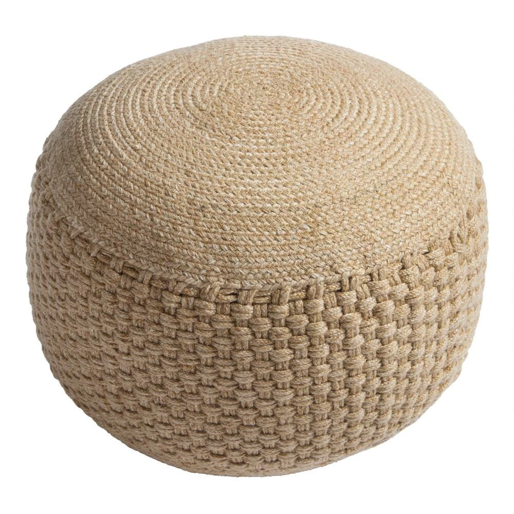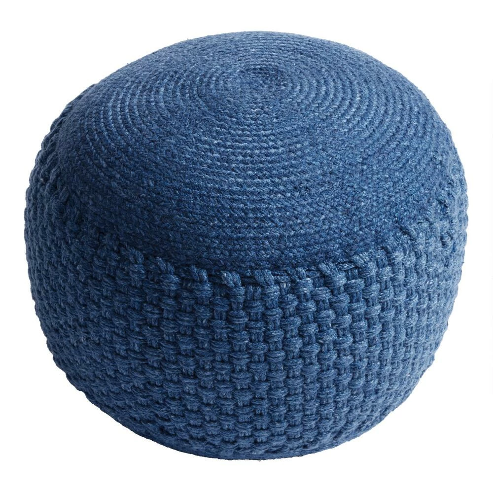 Our versatile outdoor floor pouf features a basketweave texture on the sides and a concentric braided pattern on the top. This versatile accent piece adds additional seating or a comfortable foot rest indoors or out. Available in your choice of chic shades, our patio pouf is made with an innovative recycling process that puts discarded water bottles to good use.