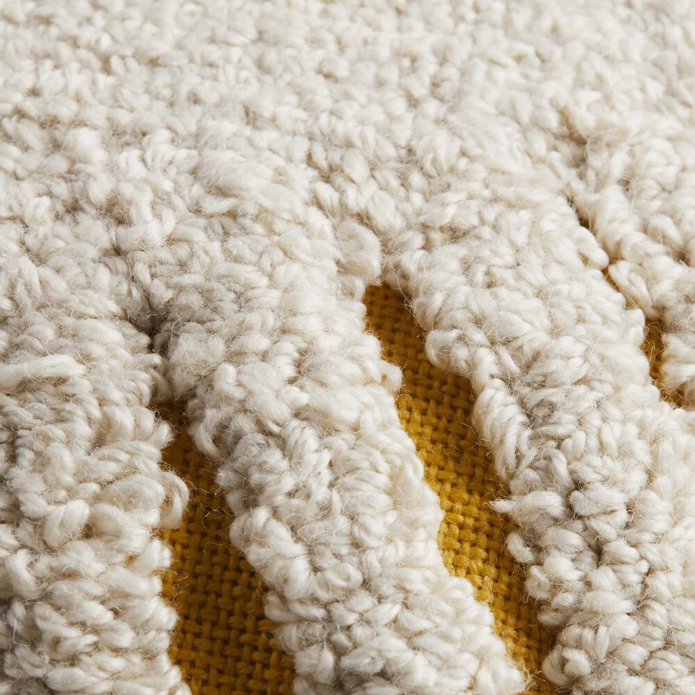 A tightly tufted sun face serenely smiles on our exclusive round ivory throw pillow. The sun’s visage is tufted in gold, and its cheerful rays are made of woven gold fabric for a multi-textural treat. With a solid ivory back, this outdoor decor makes a fun addition to your toss pillow collection and is made with an innovative recycling process that puts discarded water bottles to good use.