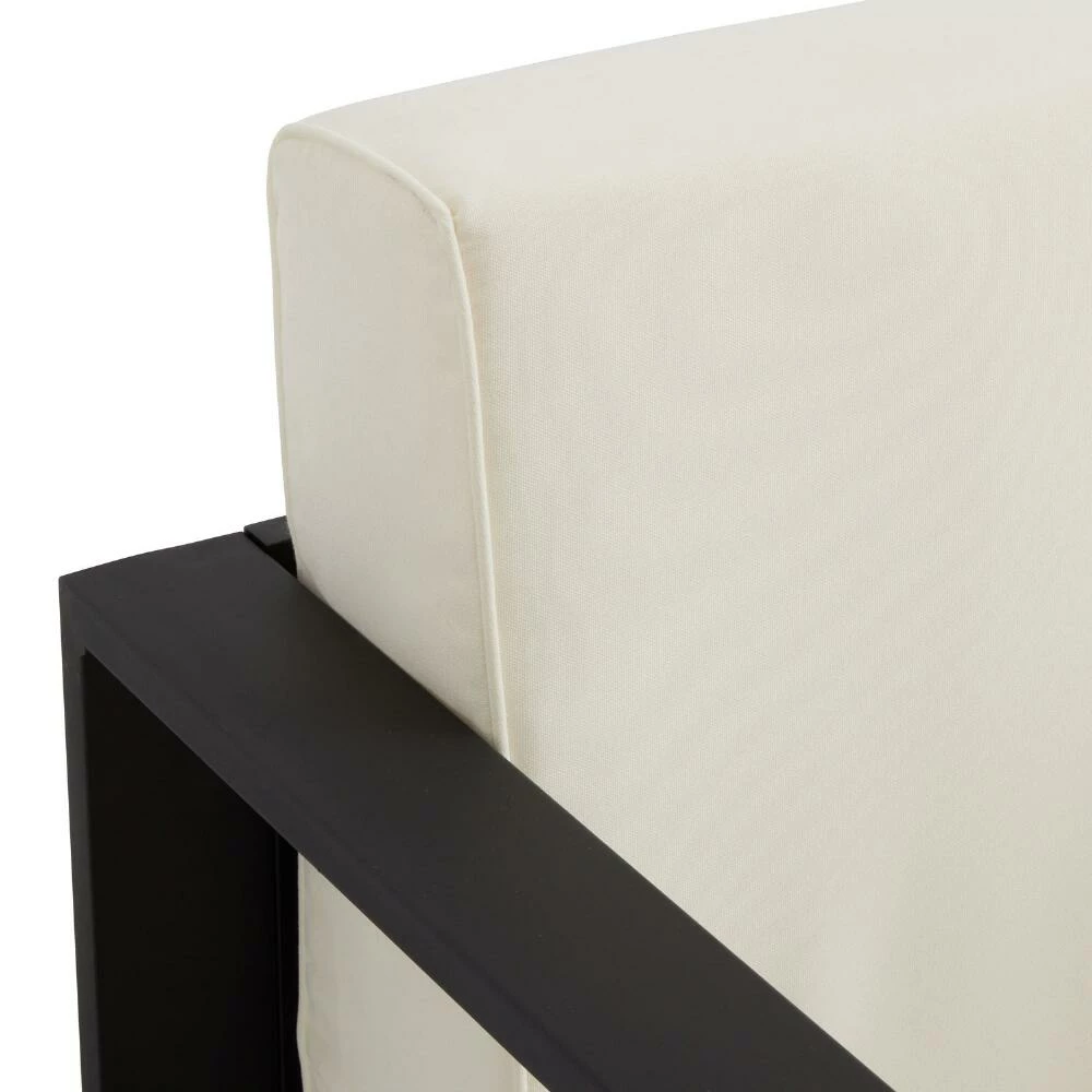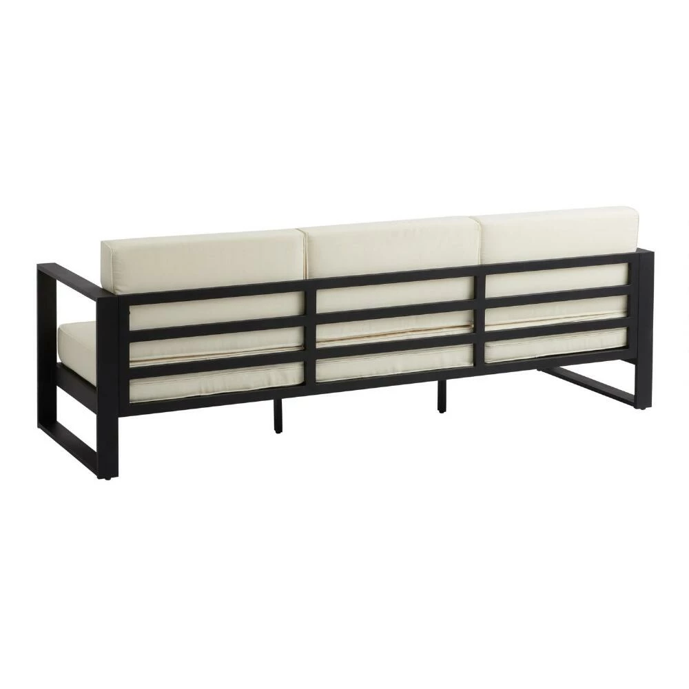 An industrial-style update to our bestselling Segovia furniture, this outdoor sofa creates space for stylish outdoor lounging. A modern classic with durable steel construction, this angular, modern three-seater couch contrasts a bold matte-black finish with plush ivory cushions. The perfect perch for connecting with family and friends or curling up with a book, its contemporary two-tone silhouette is a versatile complement for any patio decor.