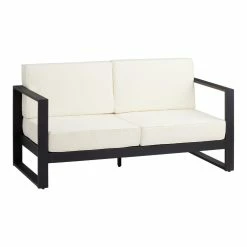 An industrial-style update to our bestselling Segovia furniture, this outdoor loveseat creates space for stylish outdoor lounging. A modern classic with durable steel construction, this angular, modern two-seater contrasts a bold matte-black finish with plush ivory cushions. The perfect perch for connecting with family and friends or curling up with a book, its contemporary two-tone silhouette is a versatile complement for any patio decor.