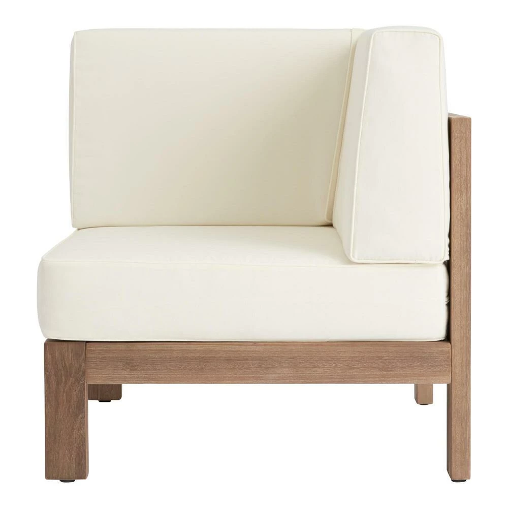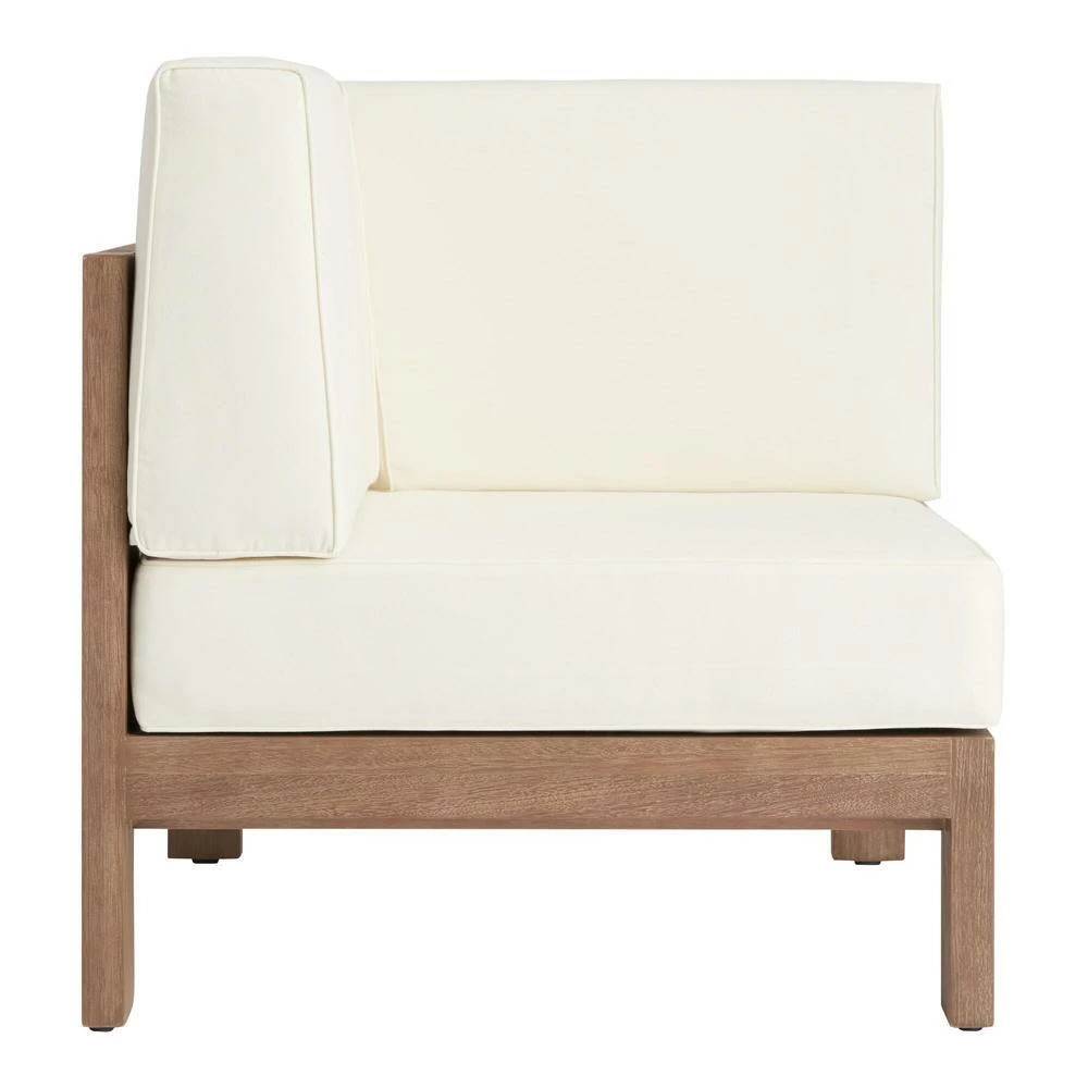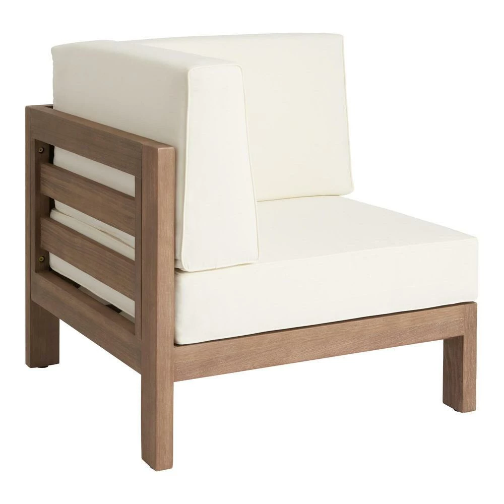 We’ve reimagined our bestselling Segovia furniture to create modular pieces that arrange in multiple configurations in outdoor spaces of all sizes. Featuring a slatted-wood frame, teak-inspired finish and plush ivory cushions, this sectional corner chair is beautiful all on its own. It’s also easy to pair with our Segovia armless chairs to create a large sectional with an ottoman, coffee table or side table.