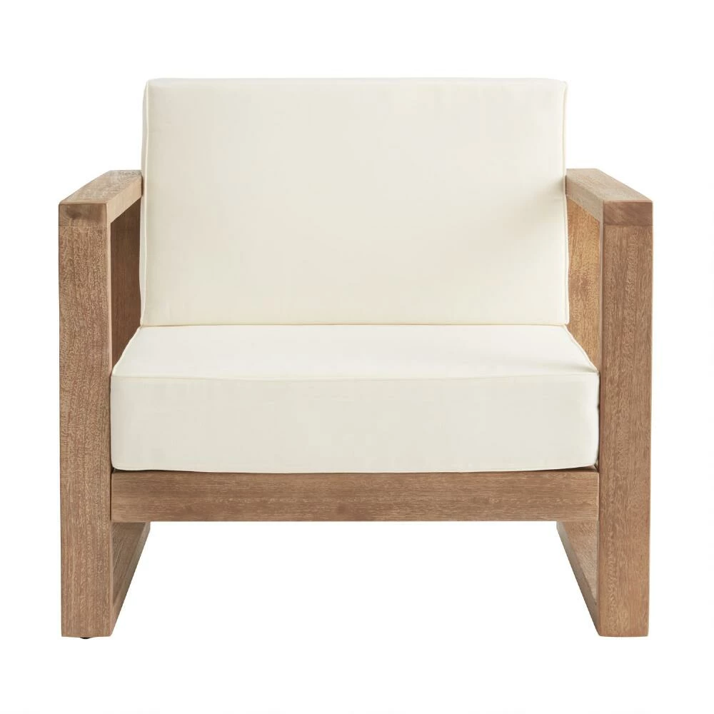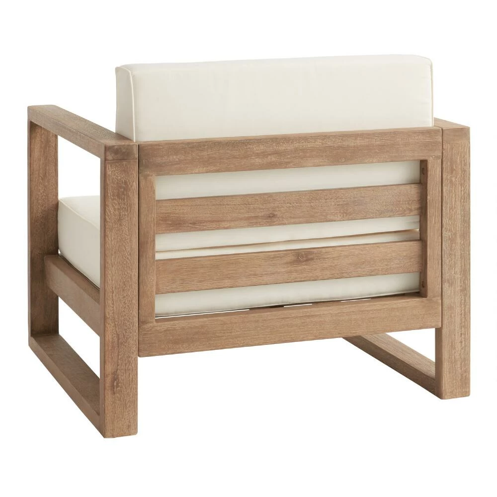 Create space for tranquil relaxation and stylish outdoor lounging with our Segovia outdoor armchair. With its impressive slatted-wood craftsmanship, hand-applied teak-inspired finish and plush ivory cushions, it has style to spare. This modern and versatile occasional seat will provide the perfect backyard or patio perch for connecting with family and friends or simply curling up with a book in the fresh air.