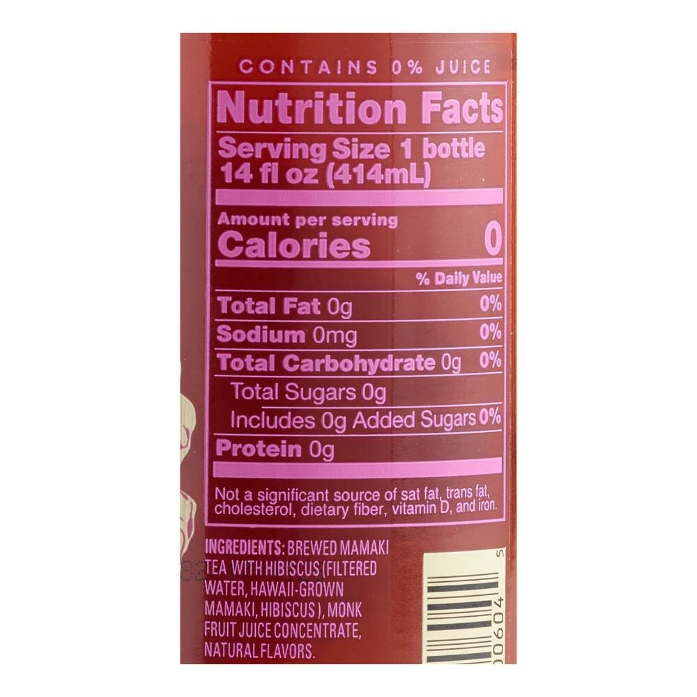 - Made with brewed mamaki tea, hibiscus, monk fruit concentrate and natural flavors