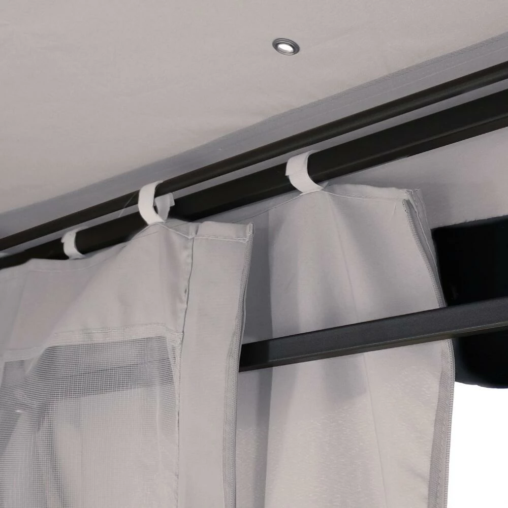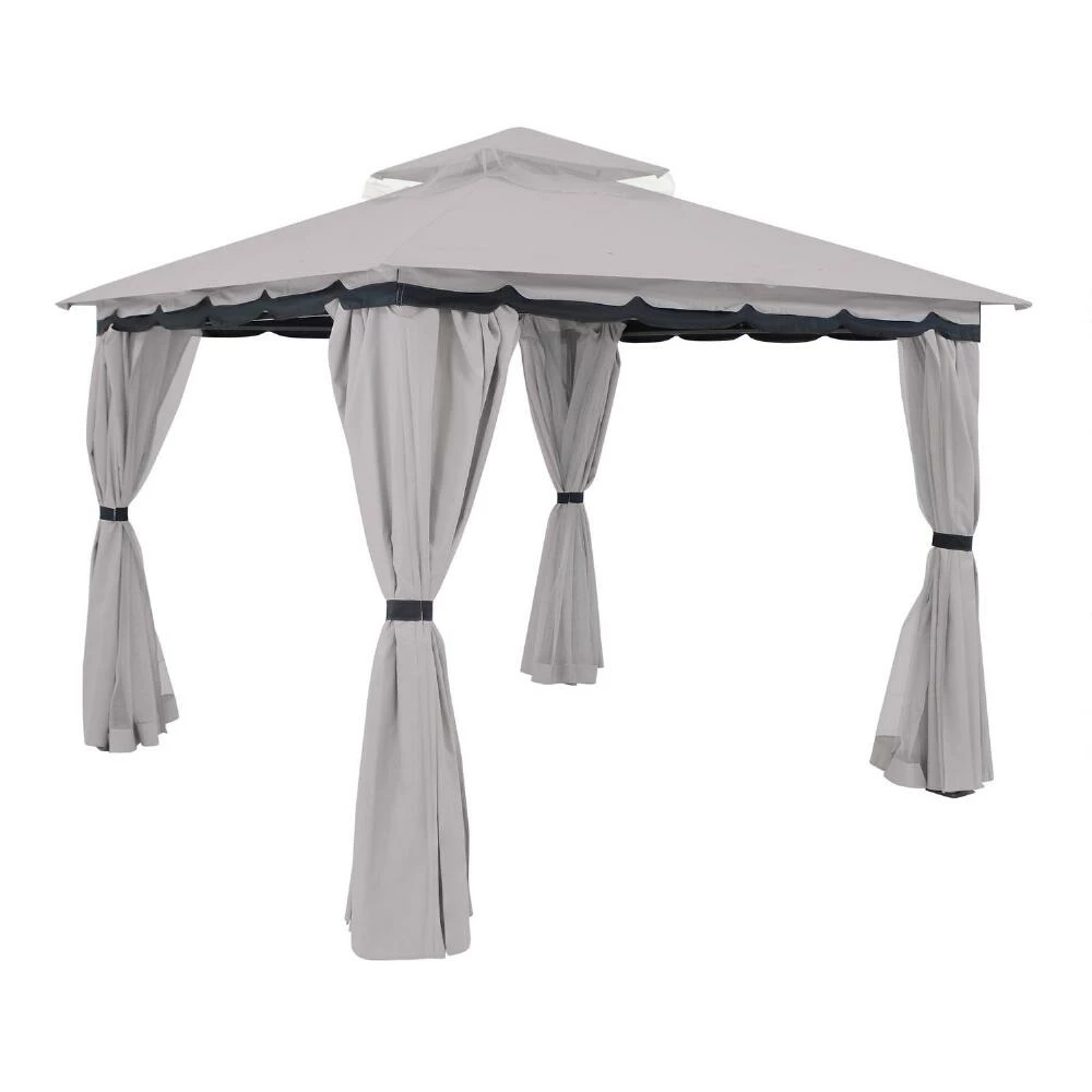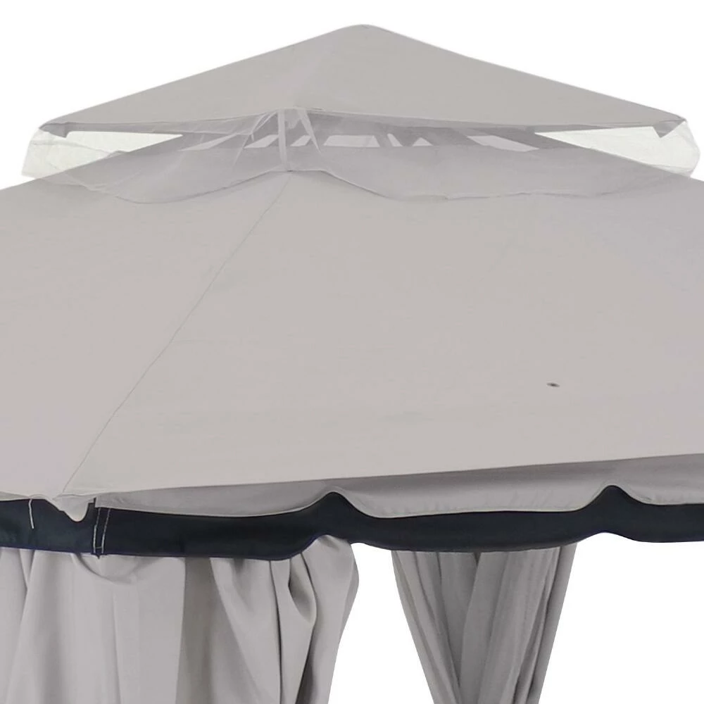 Transform your patio, deck or backyard into an outdoor oasis shielded from the elements with our gazebo. Set on a sturdy steel frame, this party tent features a thick double-canopy roof that protects from sun, rain and wind. Mesh screens keep bugs at bay while allowing air to flow and side walls offer the option of extra cover and privacy. Perfect for outdoor entertaining, this patio canopy elevates barbeques and alfresco gatherings.
