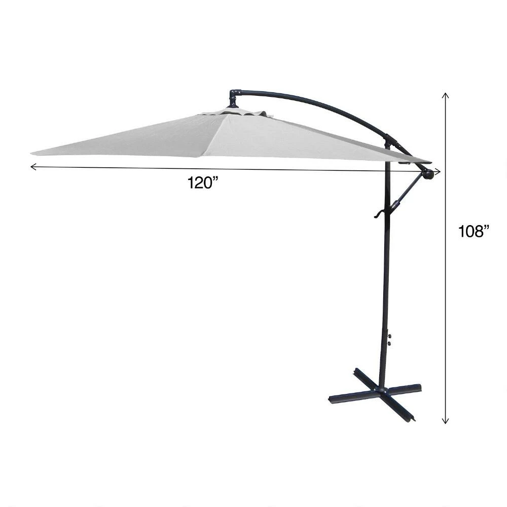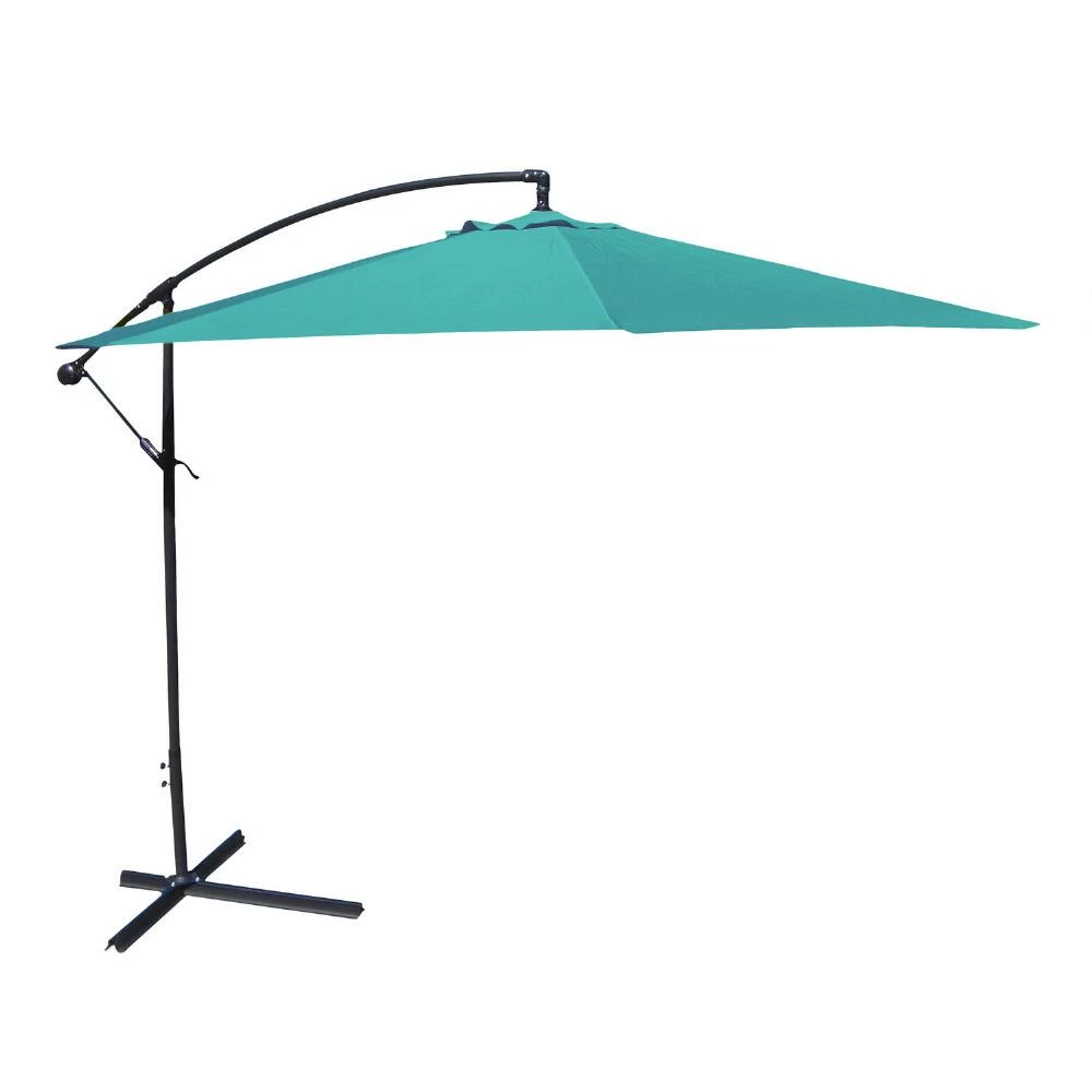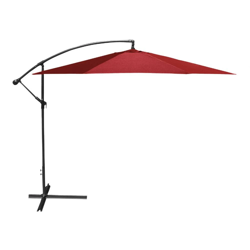 With a convenient crank and tilt option, this 10-foot cantilever patio umbrella shelters your outdoor space with a wide span of shade. Available in a selection of bright or neutral solid colors, its octagonal canopy is made of heavyweight fabric that resists harsh U.V. rays and weather. Pair this stylish modern tilting umbrella with two to four of our coordinating cantilever weight bases to anchor it safely in your outdoor oasis.