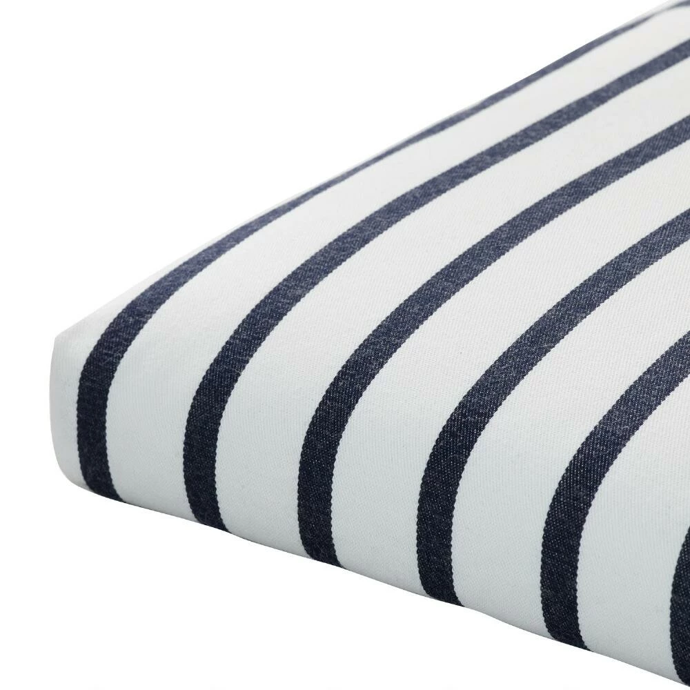 Featuring stylish white and indigo-blue stripes, our custom-made Sunbrella cushion gives your Adirondack chair a plush feel. Sunbrella performance fabric is crafted of highly saturated, U.V.-stable pigments that don’t fade, it resists mold and mildew and is durable and easy to clean. Since 1961 Sunbrella has produced innovative materials while striving to make minimal impact on the environment and never sacrificing beauty or style.