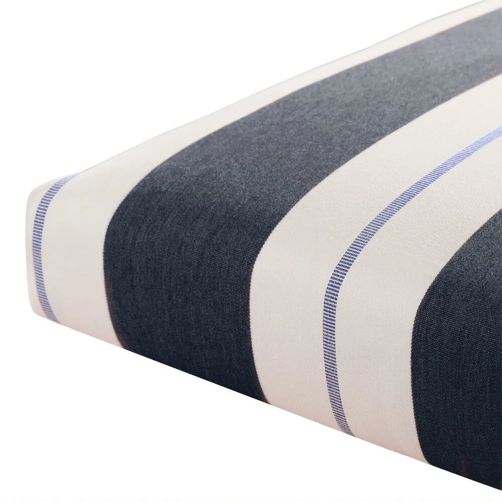 Featuring navy, white and gray stripes, our custom-made Sunbrella cushion gives your Adirondack chair a plush feel. Sunbrella performance fabric is crafted of highly saturated, U.V.-stable pigments that don’t fade, it resists mold and mildew and is durable and easy to clean. Since 1961 Sunbrella has produced innovative materials while striving to make minimal impact on the environment and never sacrificing beauty or style.