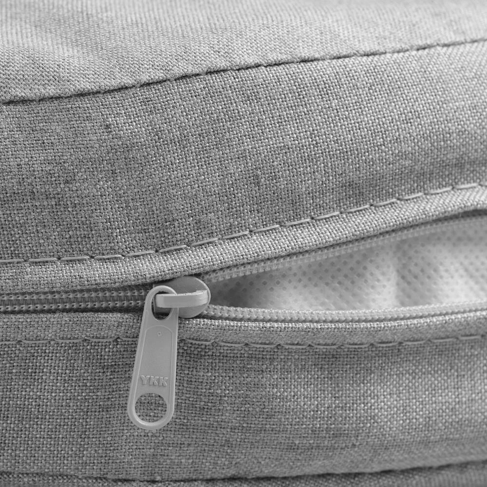 Our comfort-enhancing, premium custom-made Sunbrella lumbar pillow features a warm heathered gray hue and a cozy, plush filling. Sunbrella performance fabric is crafted of highly saturated, U.V.-stable pigments that don’t fade, it resists mold and mildew and is durable and easy to clean. Since 1961 Sunbrella has produced innovative materials while striving to make minimal impact on the environment and never sacrificing beauty or style.
