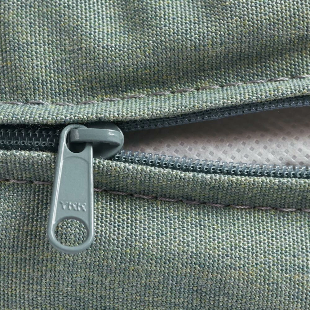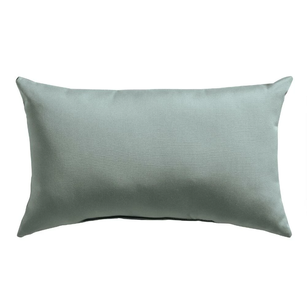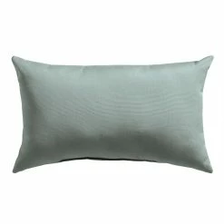 Our comfort-enhancing, premium custom-made Sunbrella lumbar pillow features a muted green-blue canvas-like cover and a cozy, plush filling. Sunbrella performance fabric is crafted of highly saturated, U.V.-stable pigments that don’t fade, it resists mold and mildew and is durable and easy to clean. Since 1961 Sunbrella has produced innovative materials while striving to make minimal impact on the environment and never sacrificing beauty or style.