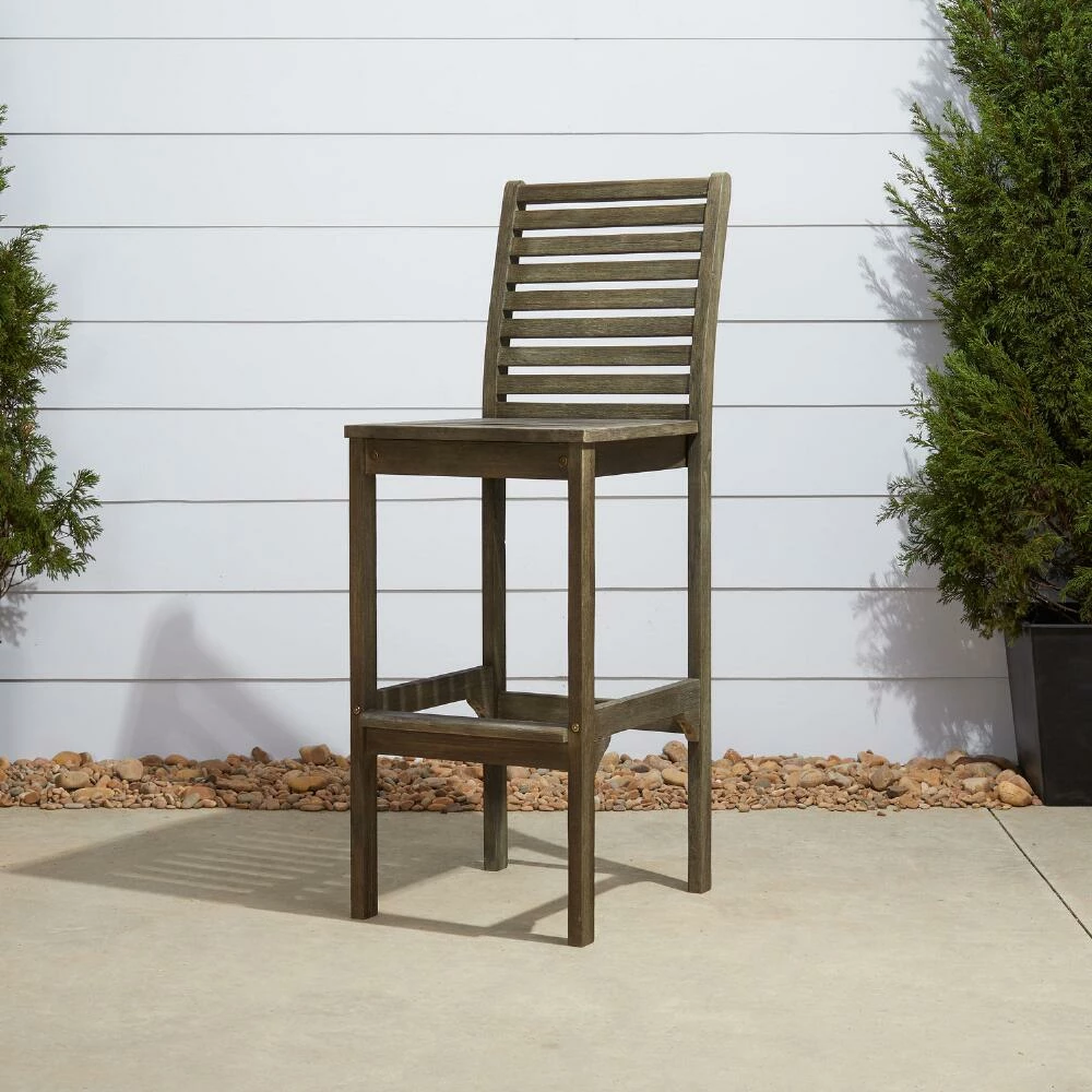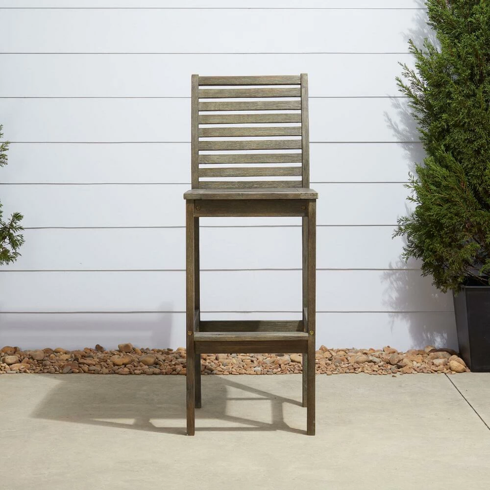 Give your backyard a distinct Caribbean vibe with the Thomas outdoor barstool. Crafted of 100% acacia hardwood, this pub chair features a distressed finish in a warm greenish-gray that shows off the wood grain’s natural beauty. A rare find, this piece fits easily into any design aesthetic and will retain its charm for years to come.