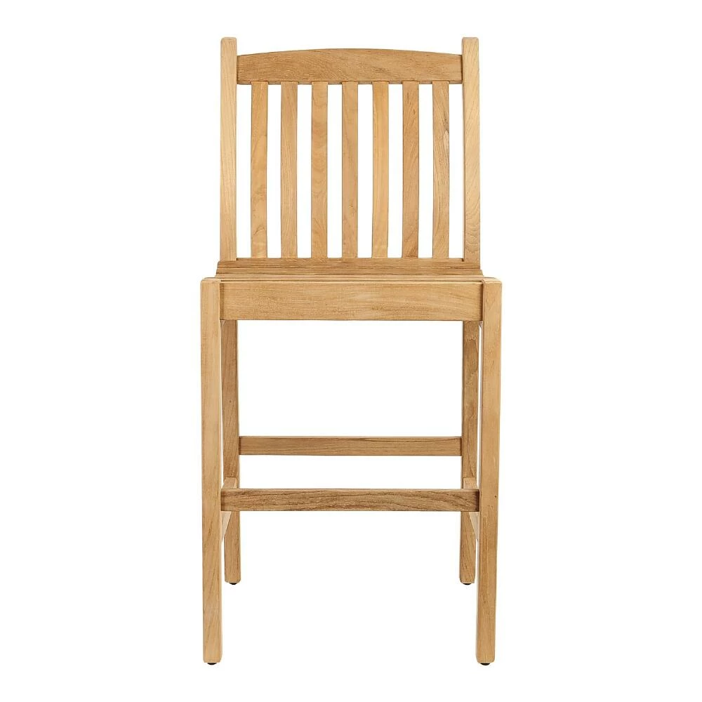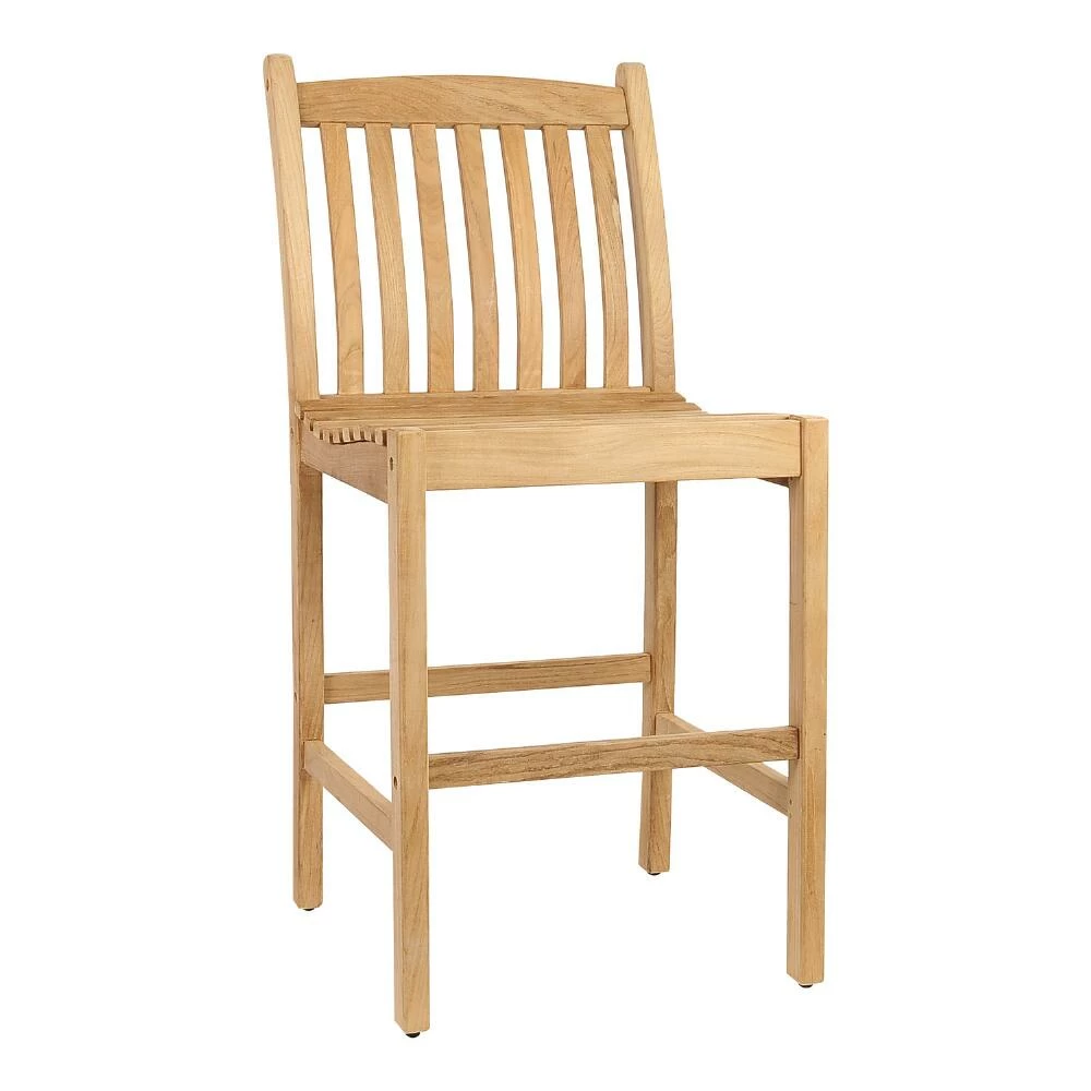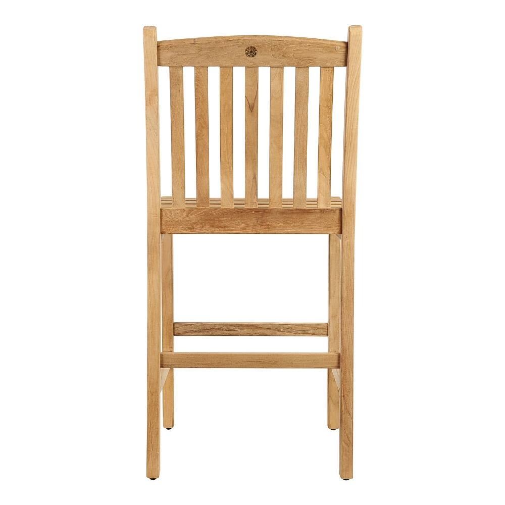 A clean design and solid teak wood construction gives the Windsong barstools their natural beauty. Made to withstand the elements, these versatile bar-height patio chairs are just as stunning indoors in the kitchen or dining room as they are outdoors in the garden or on the deck.