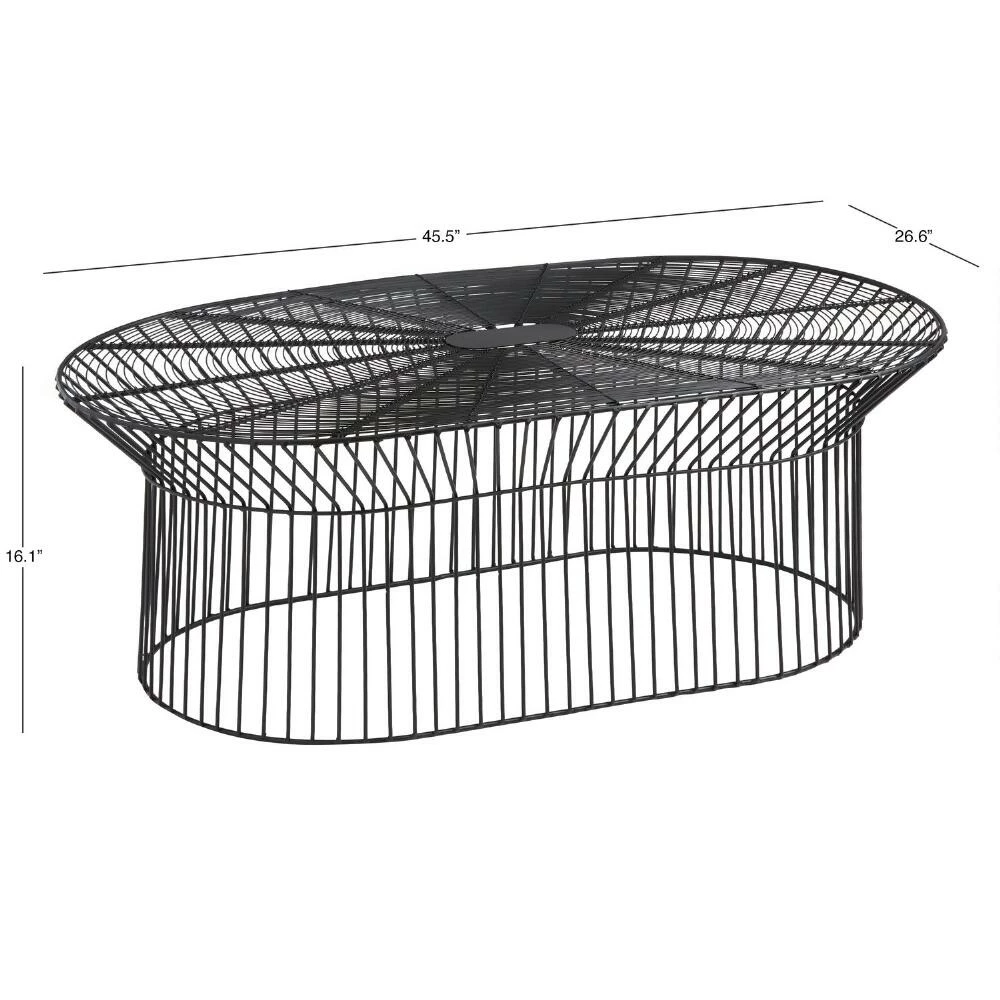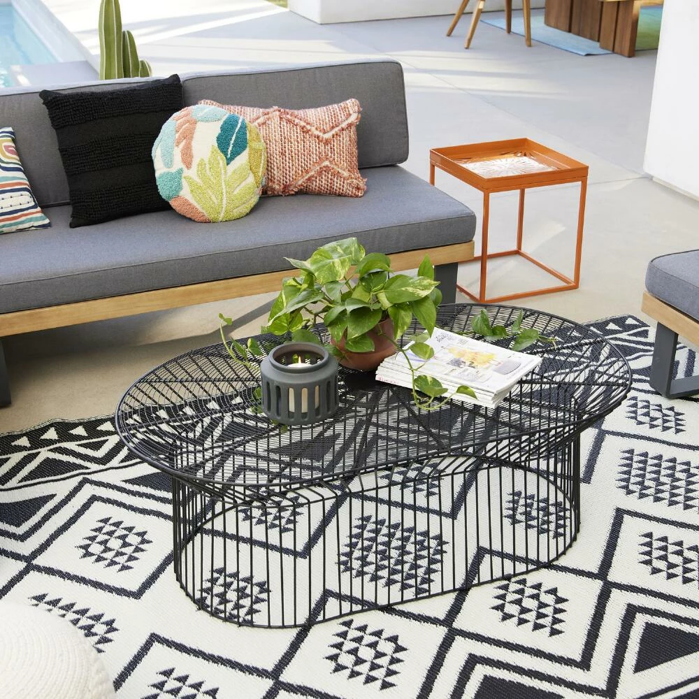 A mix-and-match champion with an oval silhouette in matte black, our Zeke patio coffee table epitomizes timeless style. Constructed of powder-coated steel arranged in a radiating geometric pattern, its open and airy beauty is tough enough to withstand the outdoor elements. A sleek fit for small spaces, you can pair it with any of our outdoor chairs to create a stunning seating arrangement that’s all your own.